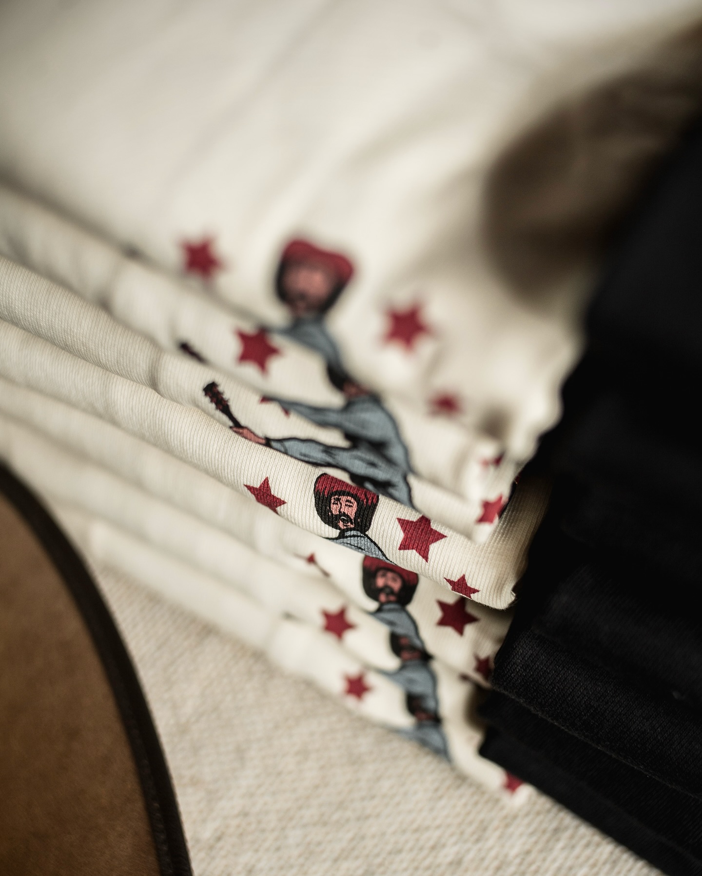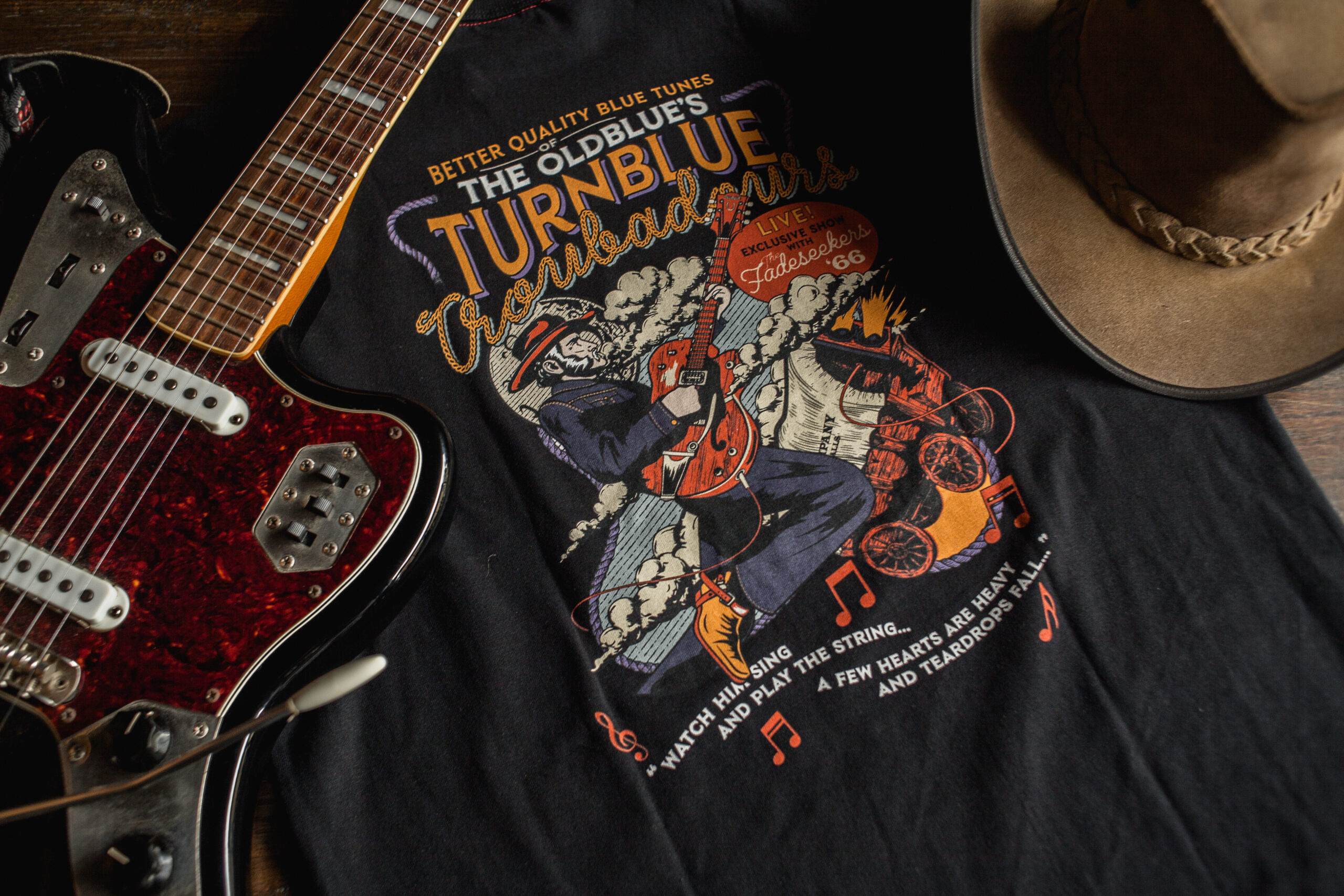 These shirts pack the punch of a howlin’ harmonica and the swagger of a smokin’ six-string, inspired by the raw, untamed energy of the 50s and 60s. From rockabilly barn-burners to soul-steeped blues ballads, this collection tips its hat to the outlaws of sound who blazed trails in music history.