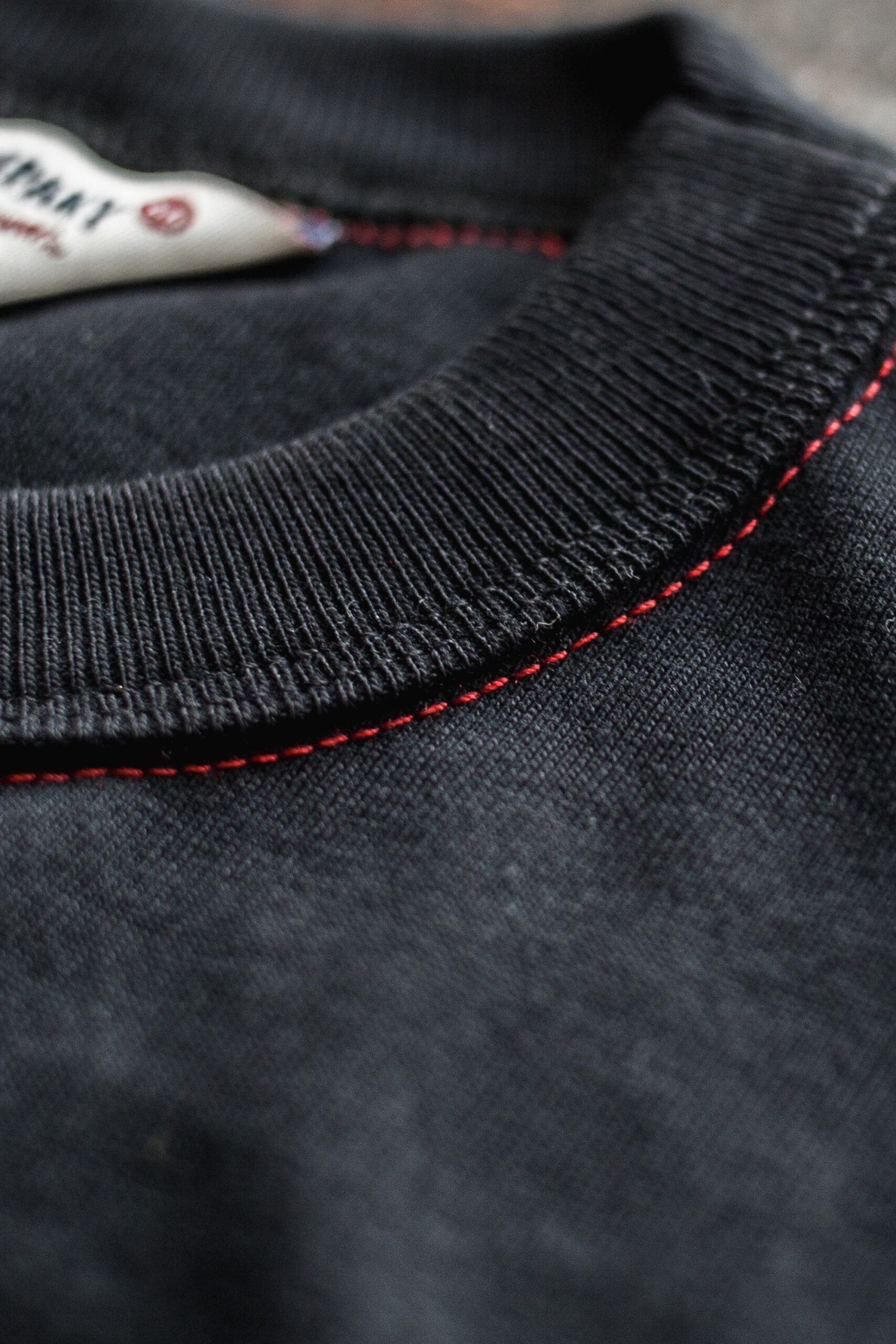 ~ Contrast red stitching on the lower neck