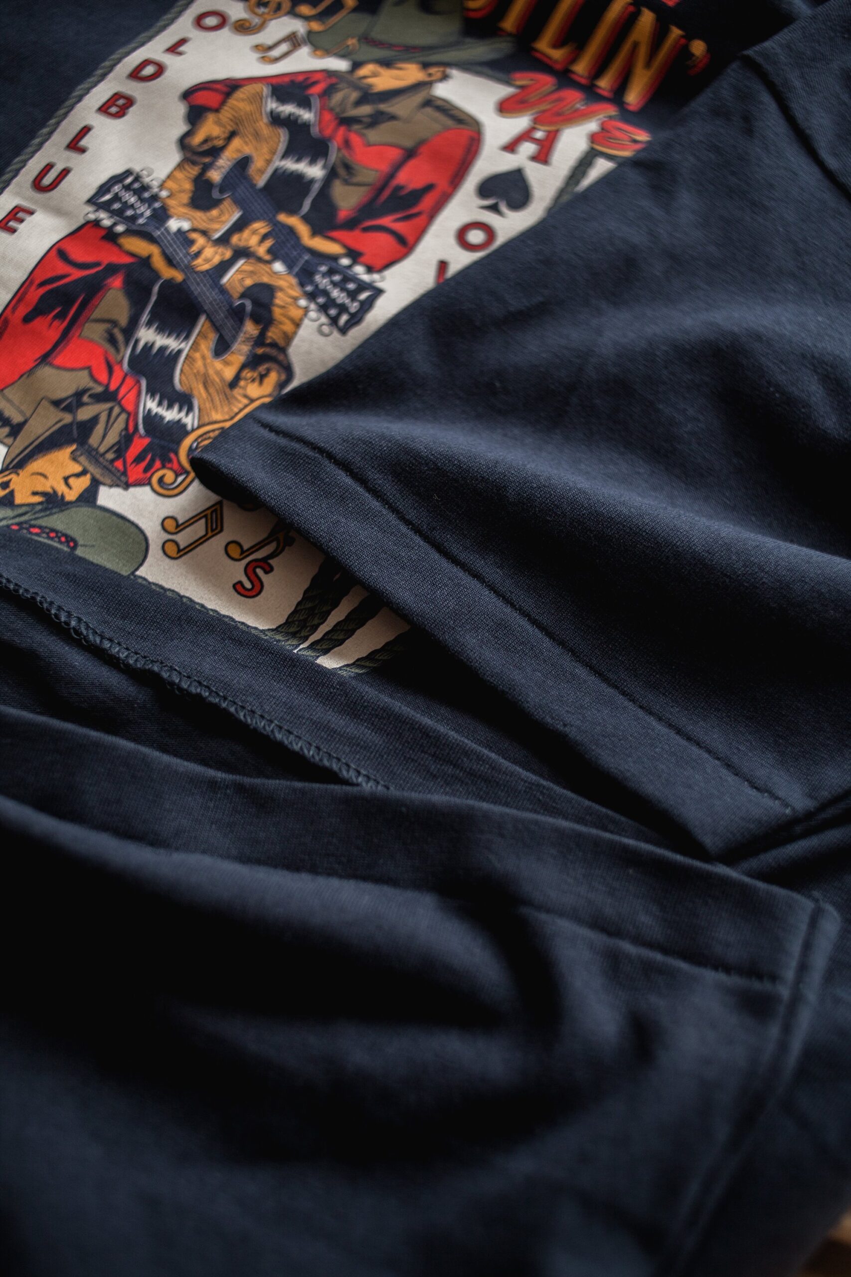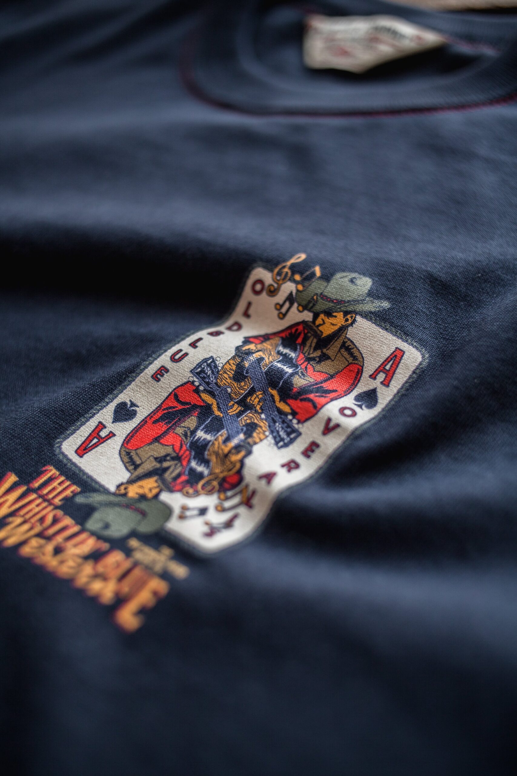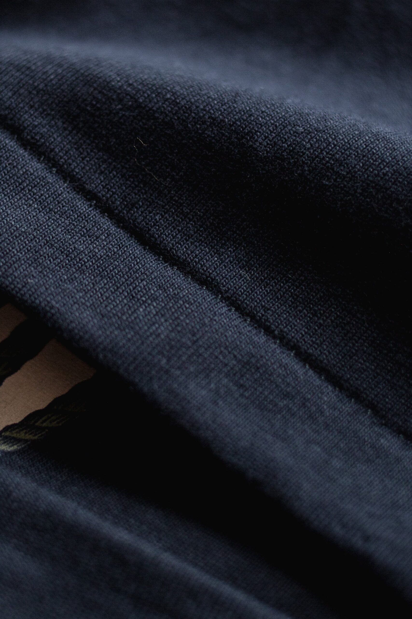For this limited run graphic tee, we put our signature Heavy Tee to good use. The base material is a 7 OZ./SQY. heavy-weight jersey-knitted fabric. Constructed using 16/1 cotton yarns. One of the most special things about the fabric is that it’s constructed using RING SPUN cotton yarns. Resulting in a very breathable and comfortable wearing experience for such heavy fabric.