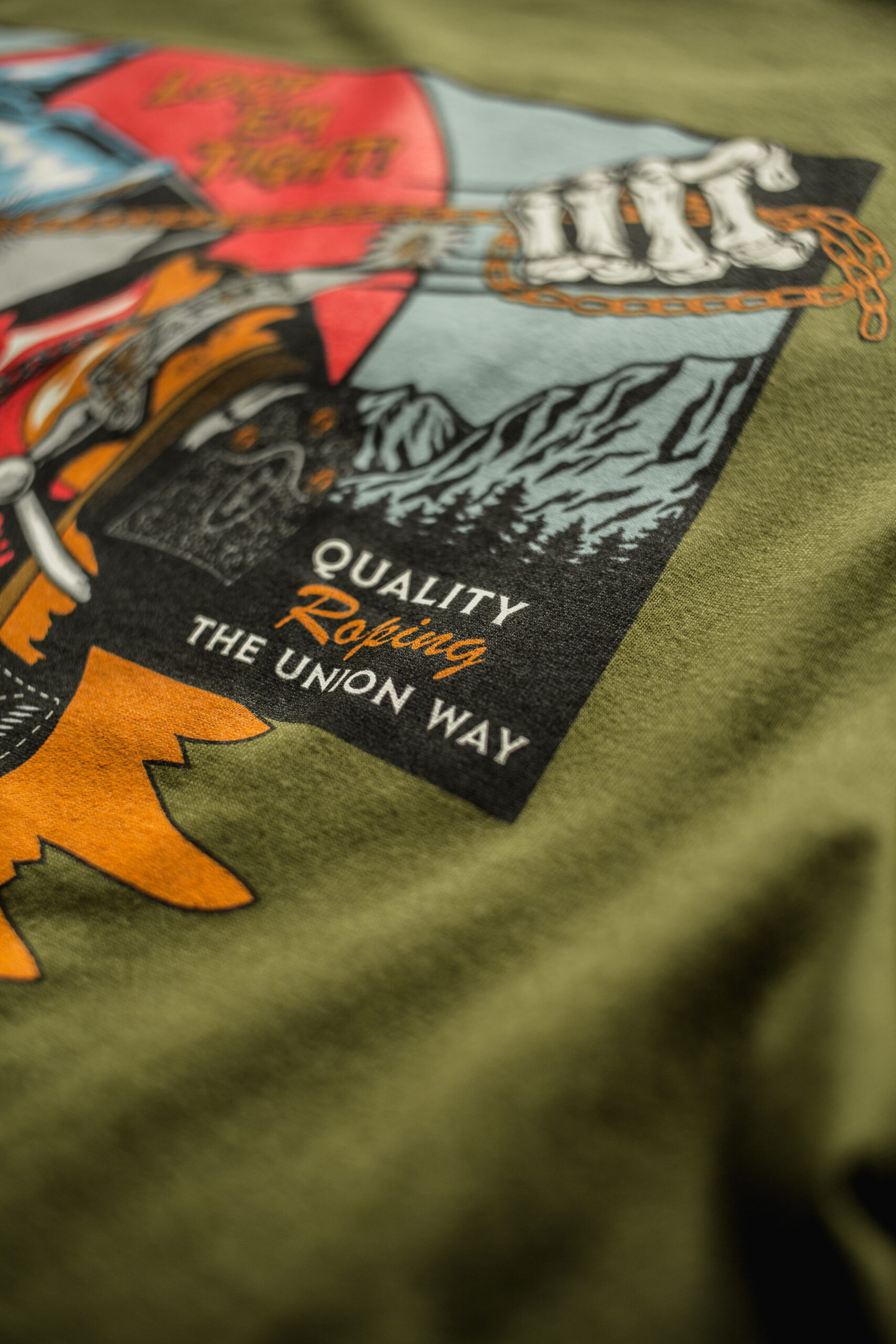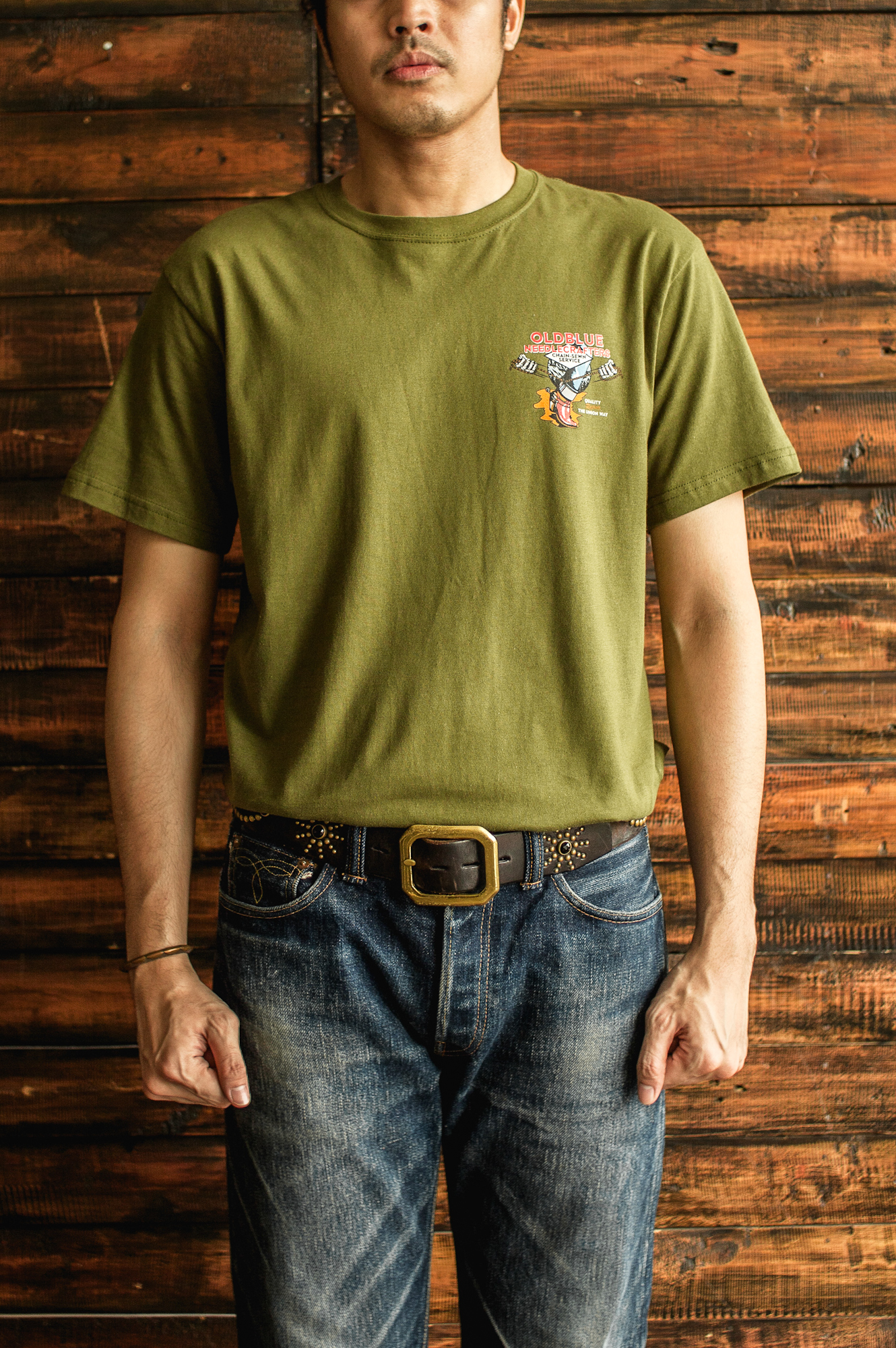 All the Regular Tee pieces were made using our ever-signature medium-weight tubular-knitted jersey fabric. Tubular tee construction can only be achieved when the jersey fabric was manufactured using a circular-knitting machine. The most obvious character is that the tee has no side seam construction. Ensuring a better and a more proper t’s shape for a longer time span. The graphic was printed using water-based ink, so you’ll have that favorable worn-in look with wears and washes.