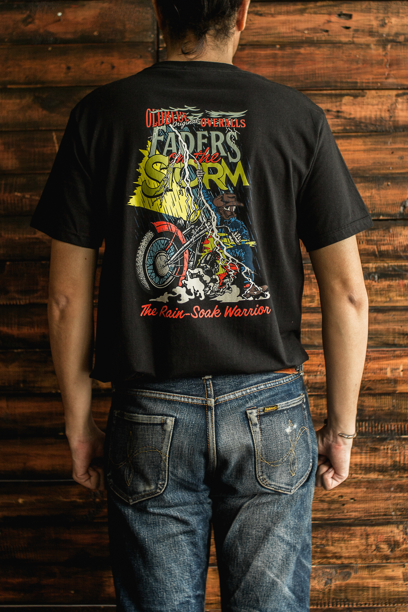 For whatever reason, if you’re in this denim world for long enough, you must’ve heard (or is it misheard) the rumor about how premature contact with water can ruin all your denim fade potential. It’s not a rare sight to see many Denim Heads allergic to a natural phenomenon called rain. Well, good thing that this Rain-Soak Warrior knows better. He’s never afraid of crashing in the rain with his blue-jean on. He reaches the level to be the FADERS OF THE STORM.