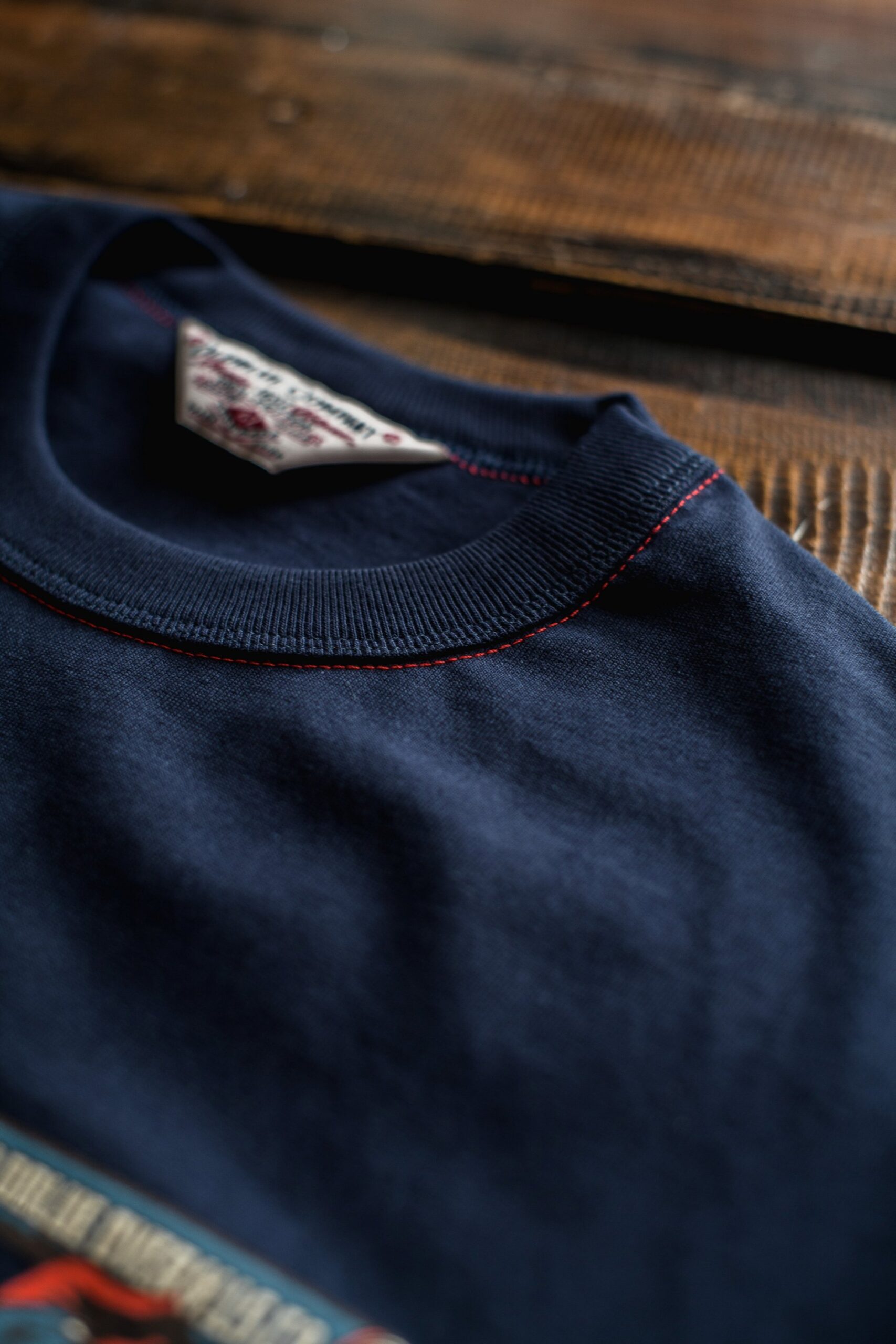 The details are where the truth shows. Triple-needle stitching with neck binding reinforces the rib so it holds its shape through hard wear and harder washes. Finished with blind-stitch construction on the sleeves and hem—a method long favored in vintage tees and widely used until the mid-1990s. These aren’t decorations. They’re working details, chosen because they last.