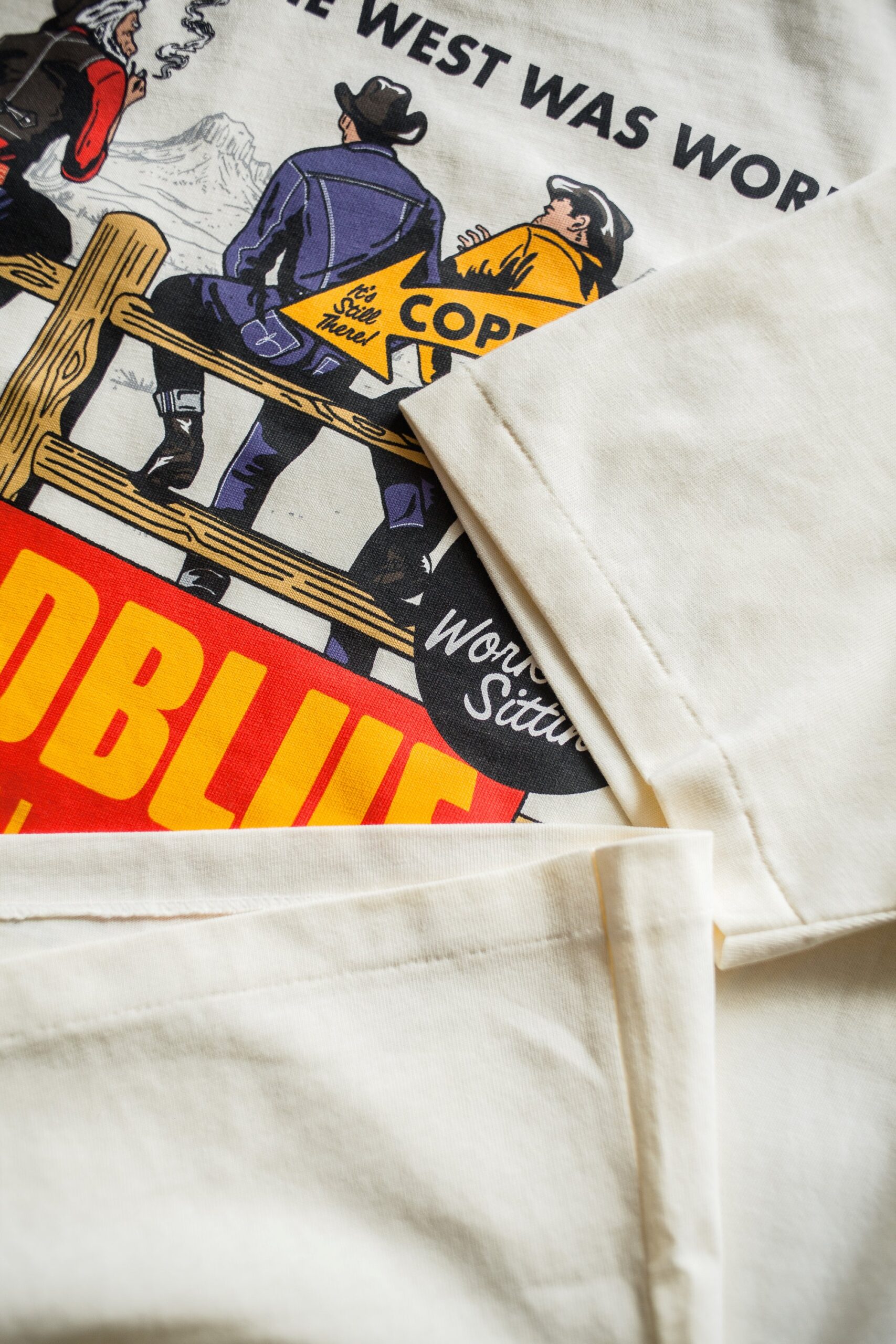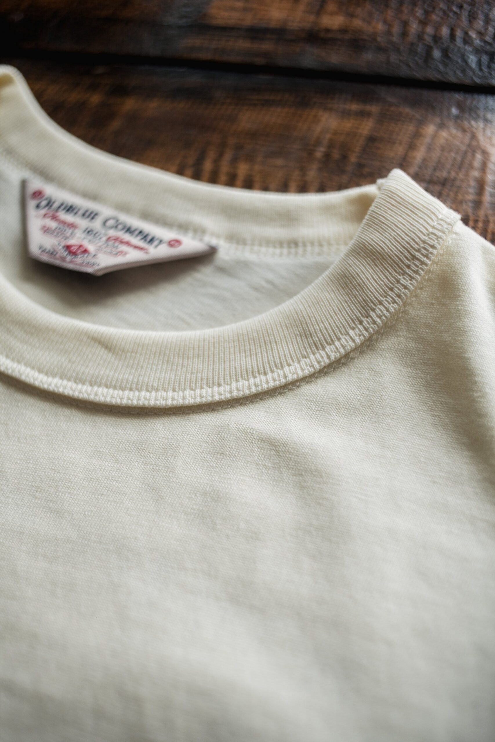The details are where the truth shows. Triple-needle stitching with neck binding reinforces the rib so it holds its shape through hard wear and harder washes. Finished with blind-stitch construction on the sleeves and hem—a method long favored in vintage tees and widely used until the mid-1990s. These aren’t decorations. They’re working details, chosen because they last.