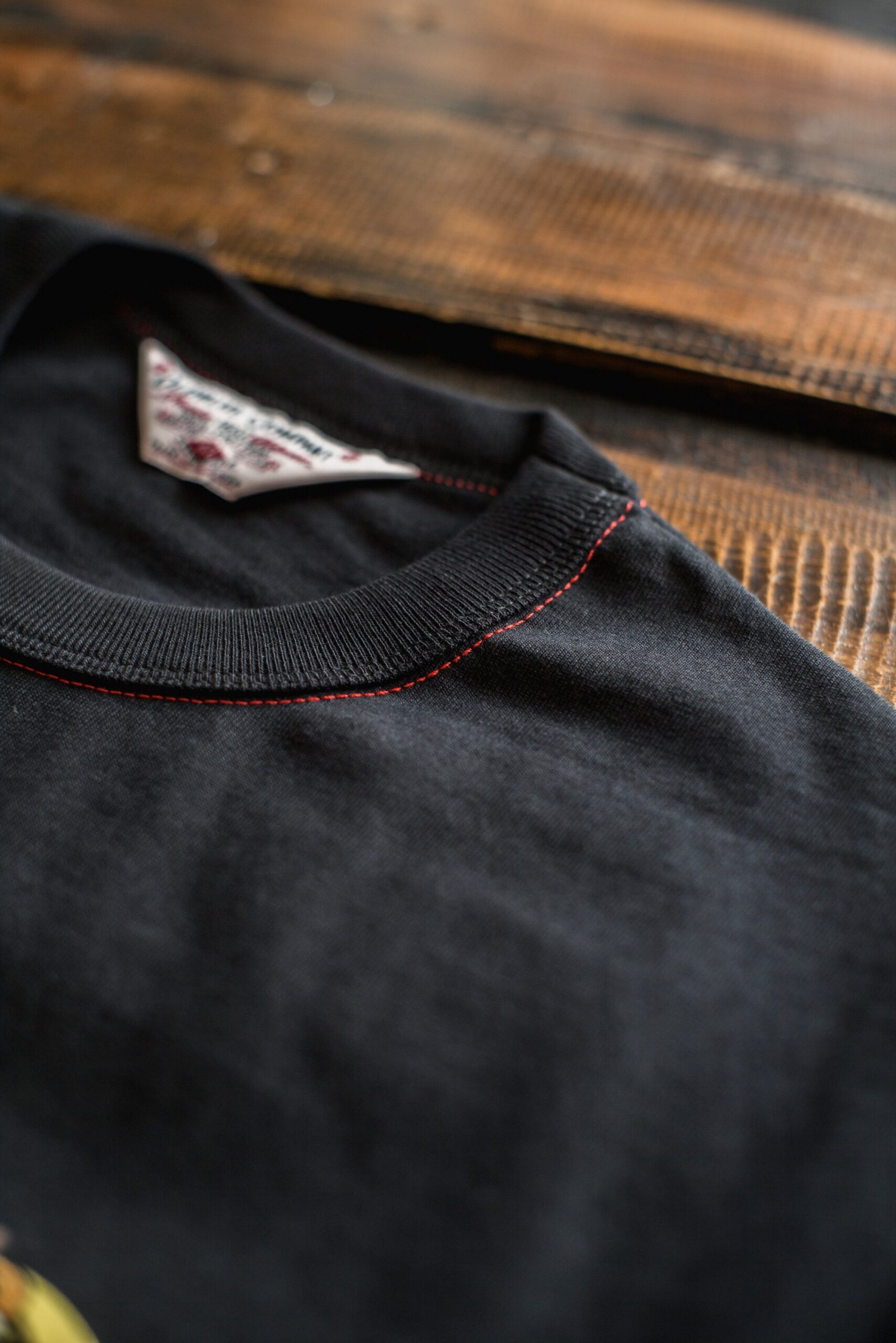 The details are where the truth shows. Triple-needle stitching with neck binding reinforces the rib so it holds its shape through hard wear and harder washes. Finished with blind-stitch construction on the sleeves and hem—a method long favored in vintage tees and widely used until the mid-1990s. These aren’t decorations. They’re working details, chosen because they last.