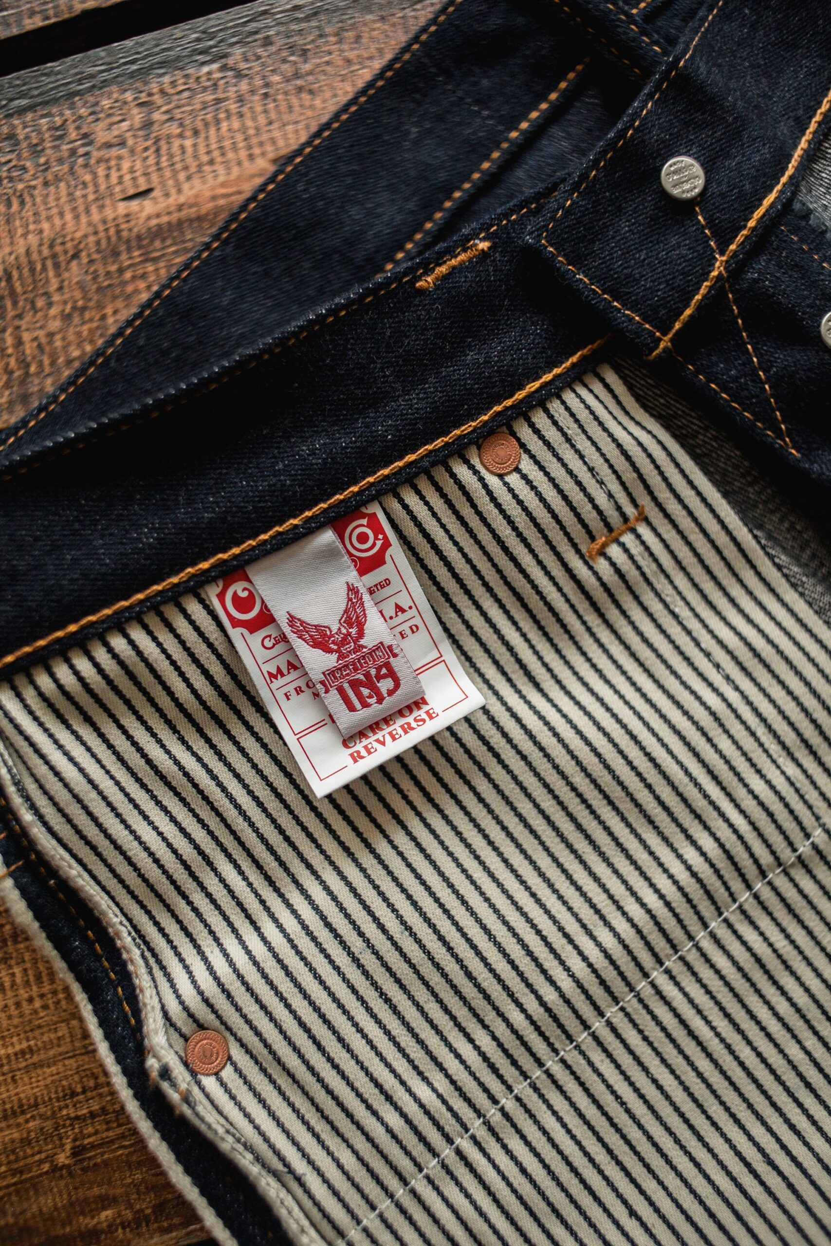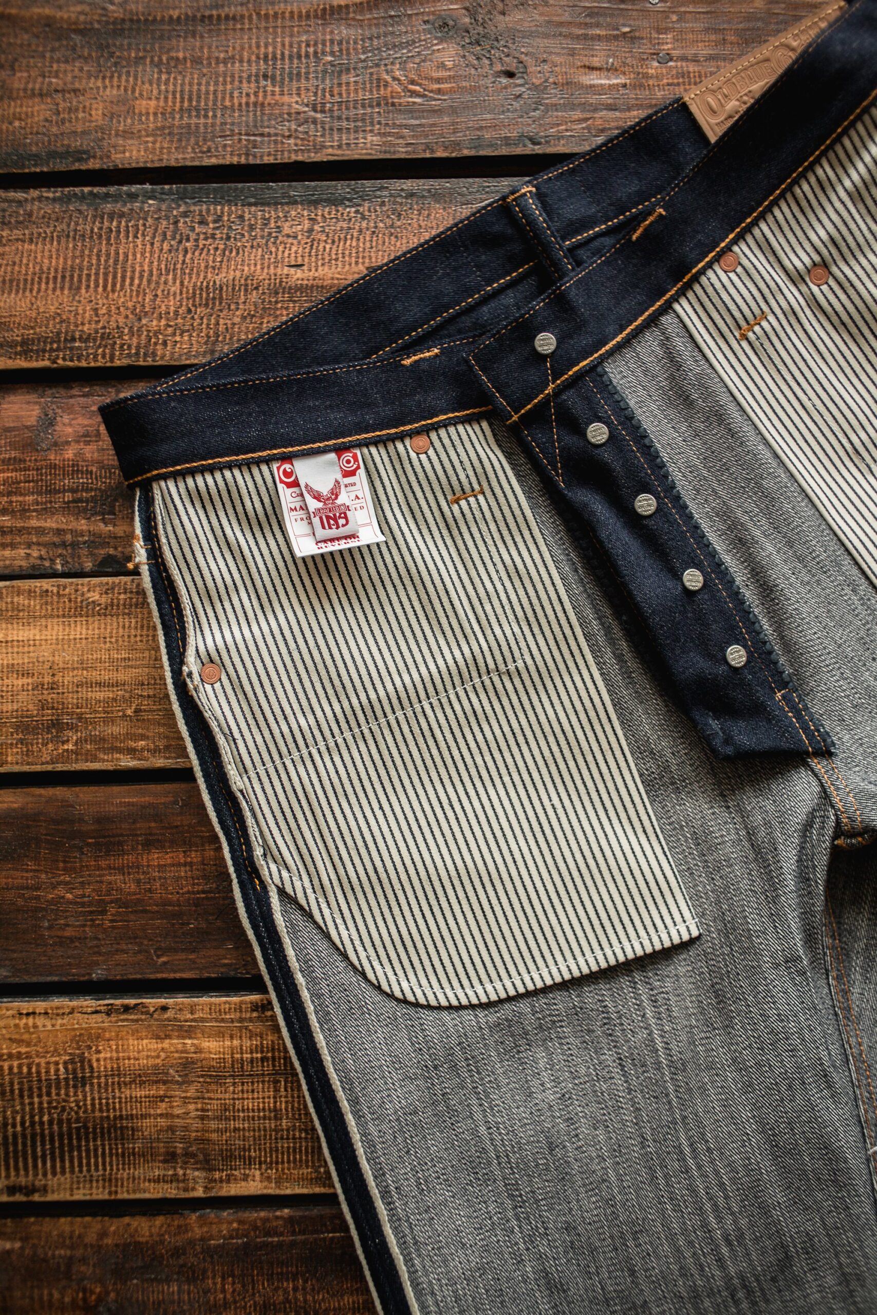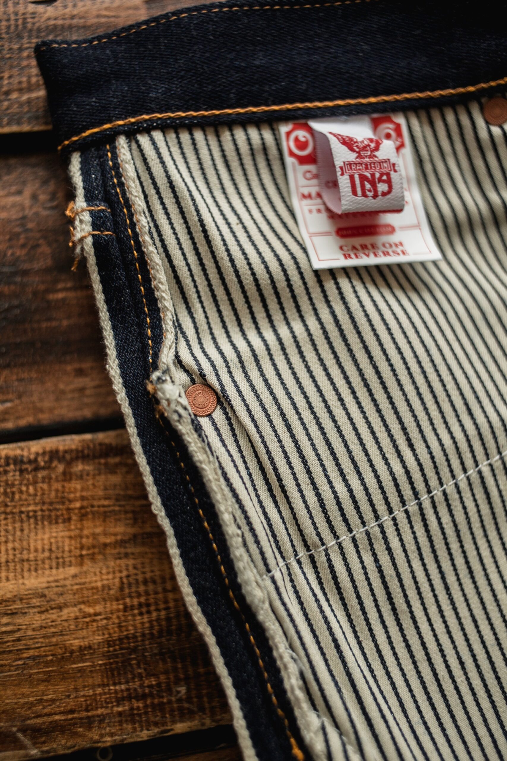 Aside of the Indonesian-milled denim, we also tried to utilize other domestically made & sourced supporting materials here. The brass-made buttons and the copper-finished rivets were all developed and made locally here. They might be the 2nd longest development; aside of the denim fabric, of course. The cowhide we utilized for the leather patch was sourced locally. Natural vegetable tanned kind of leather. The beautiful indigo hickory pocket lining fabric was also sourced locally. that kind of blue is pretty perfect to symbolize the ocean waves, isn’t it? The sewing thread constructing the jean, well it’s not an Indonesian-labelled company. But at least they have a production factory here that makes the sewing thread we put to good use.