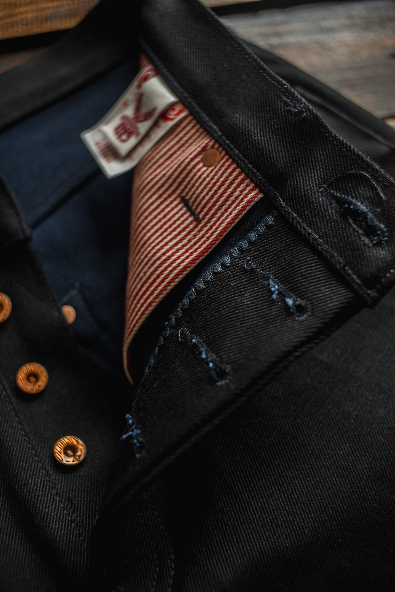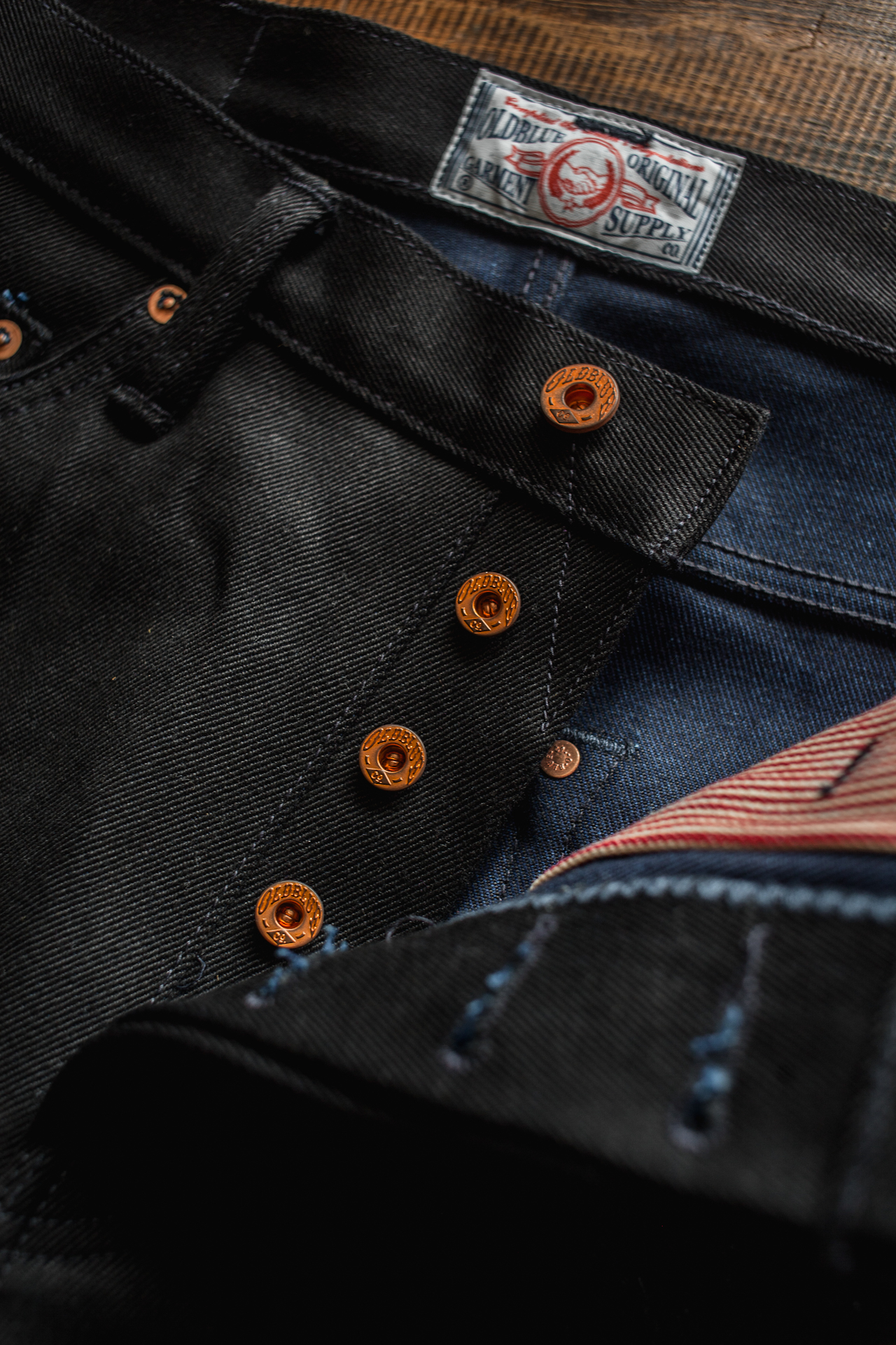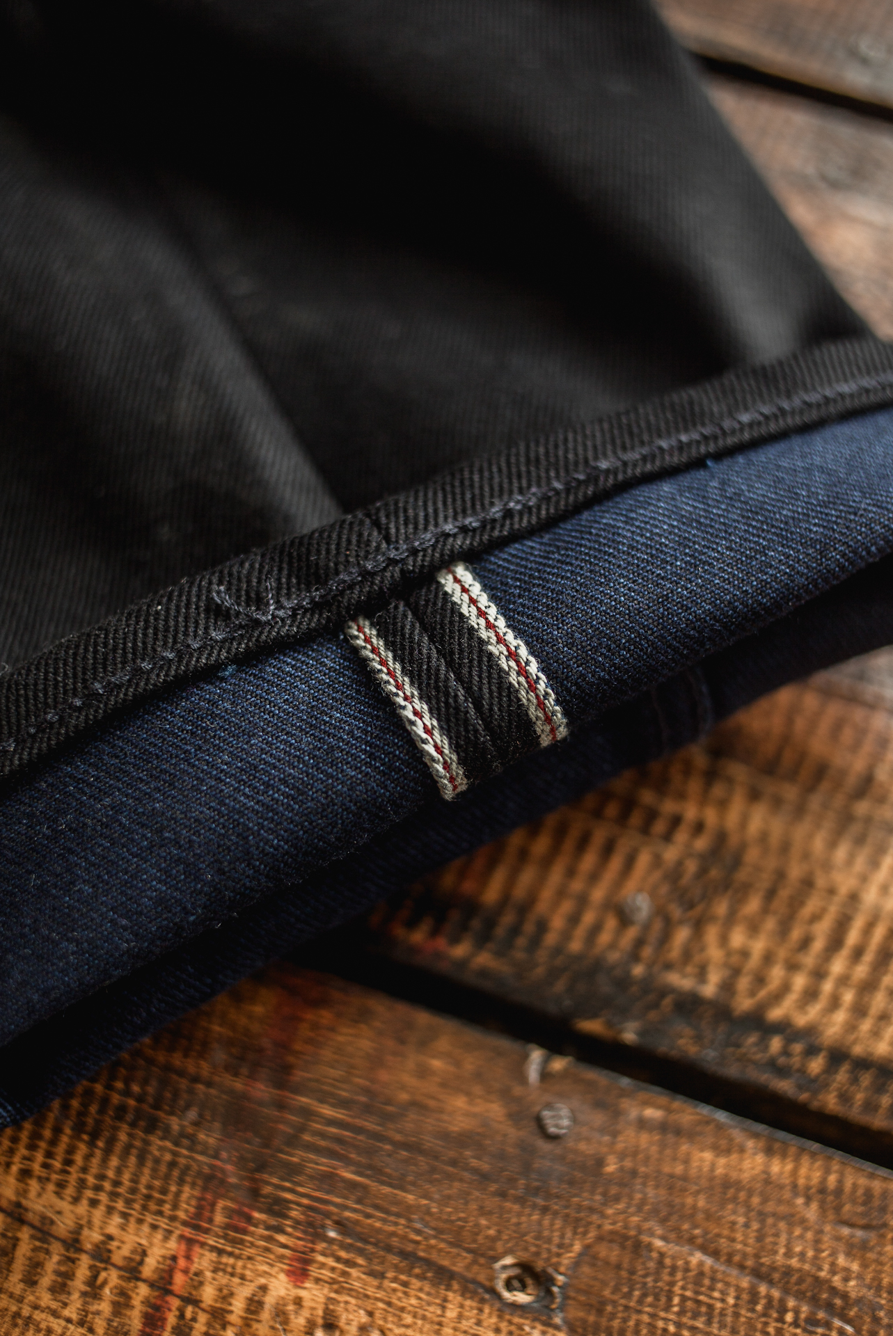 ~ 18 oz black x indigo selvedge denim