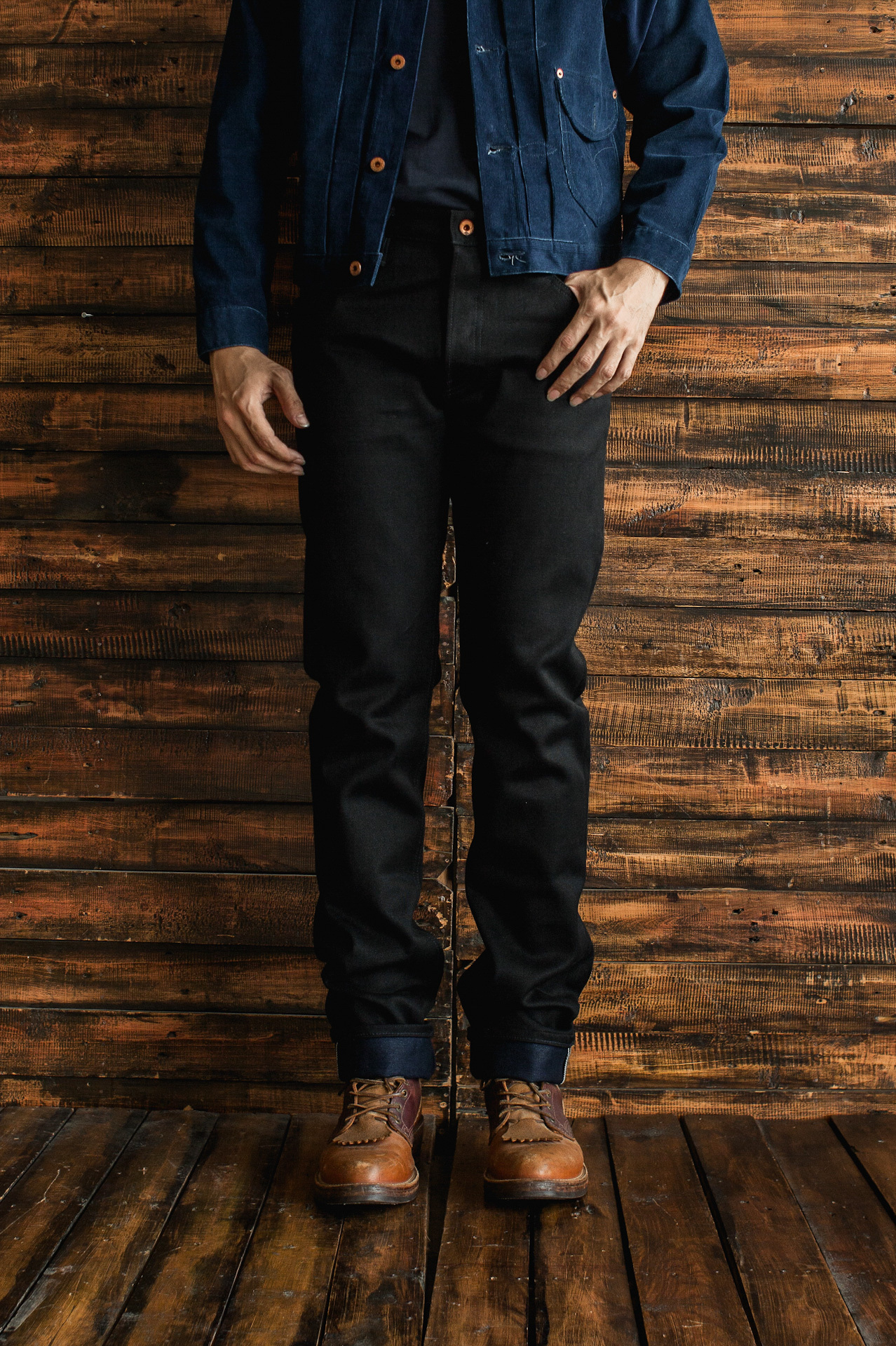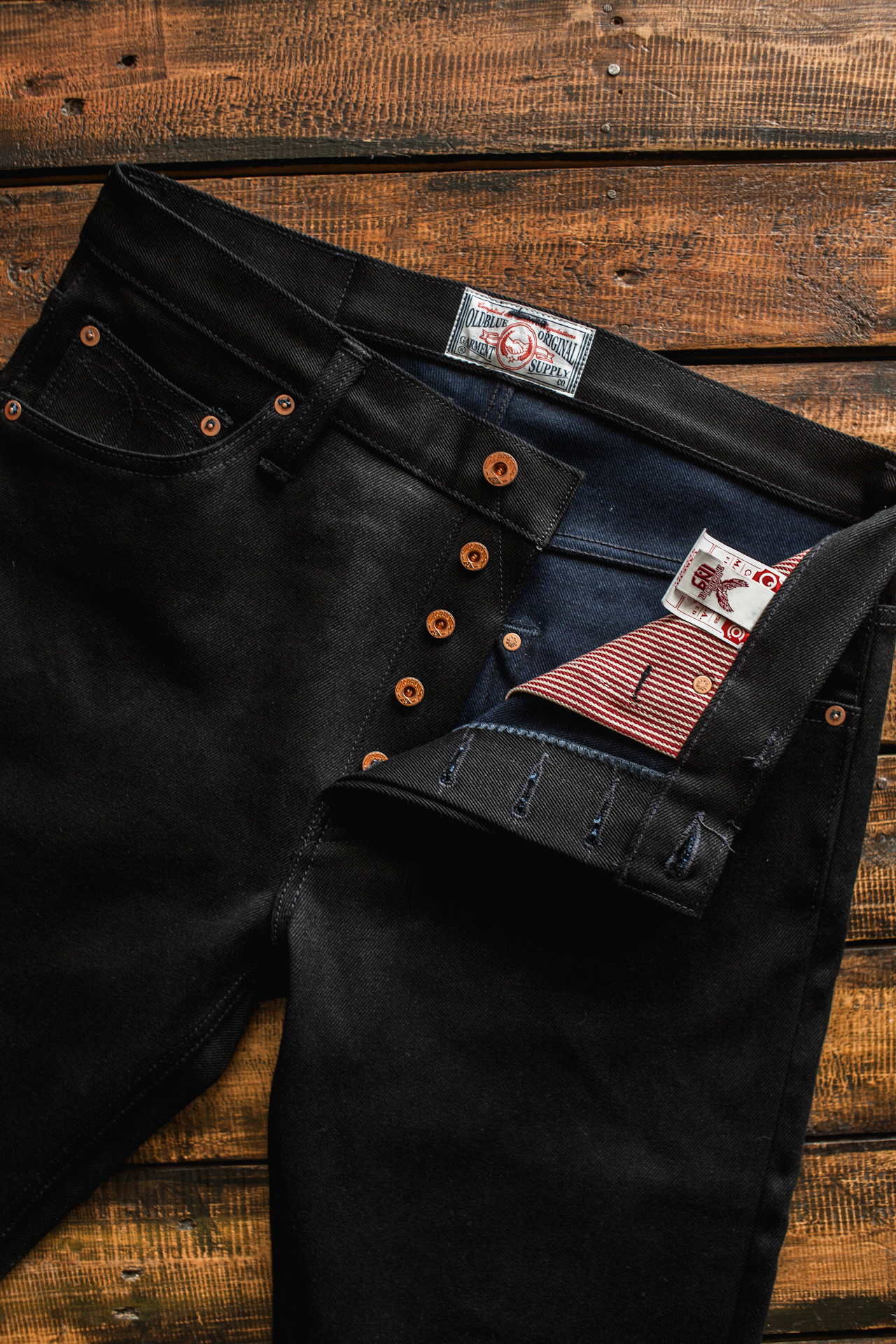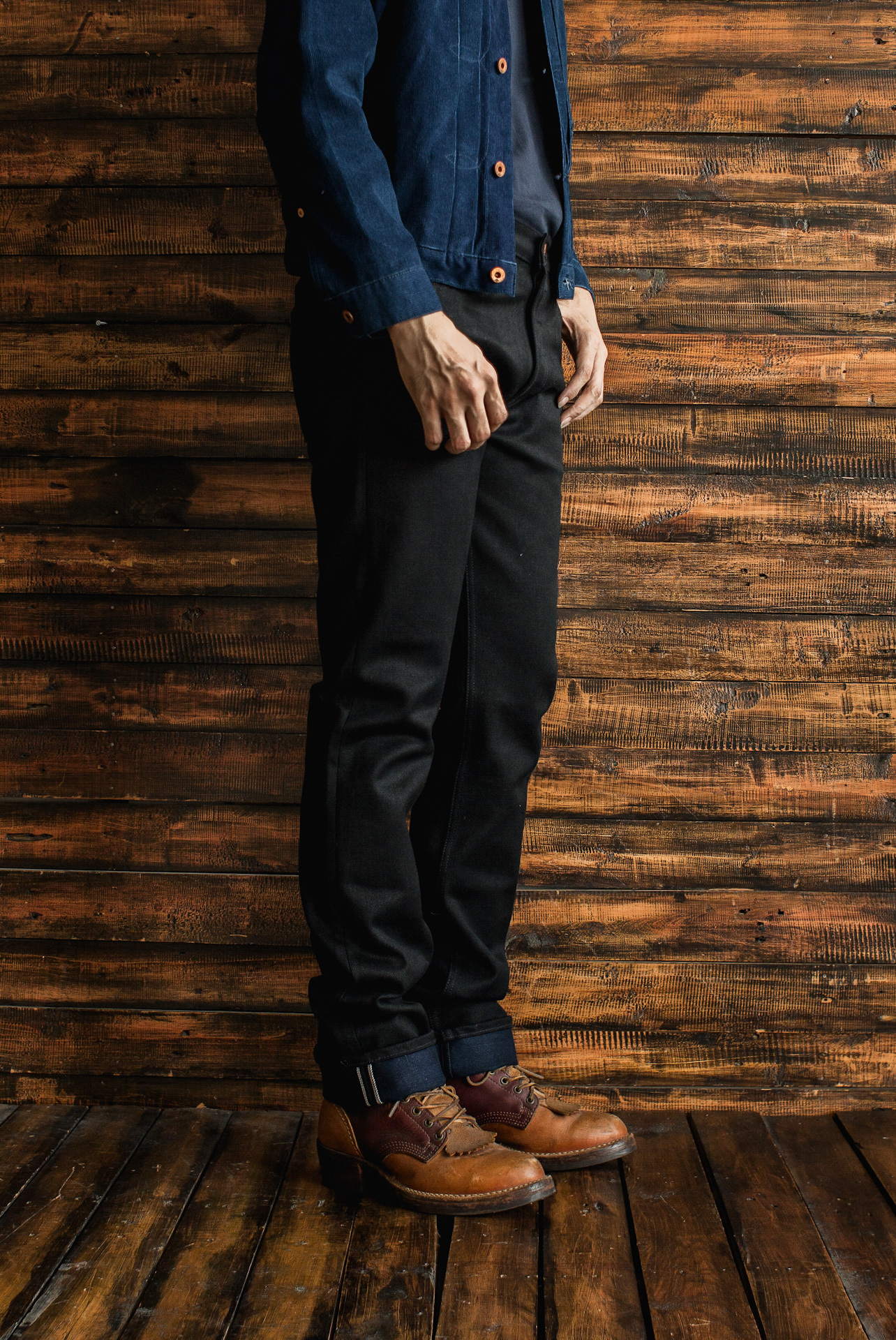 ~ 18 oz black x indigo selvedge denim