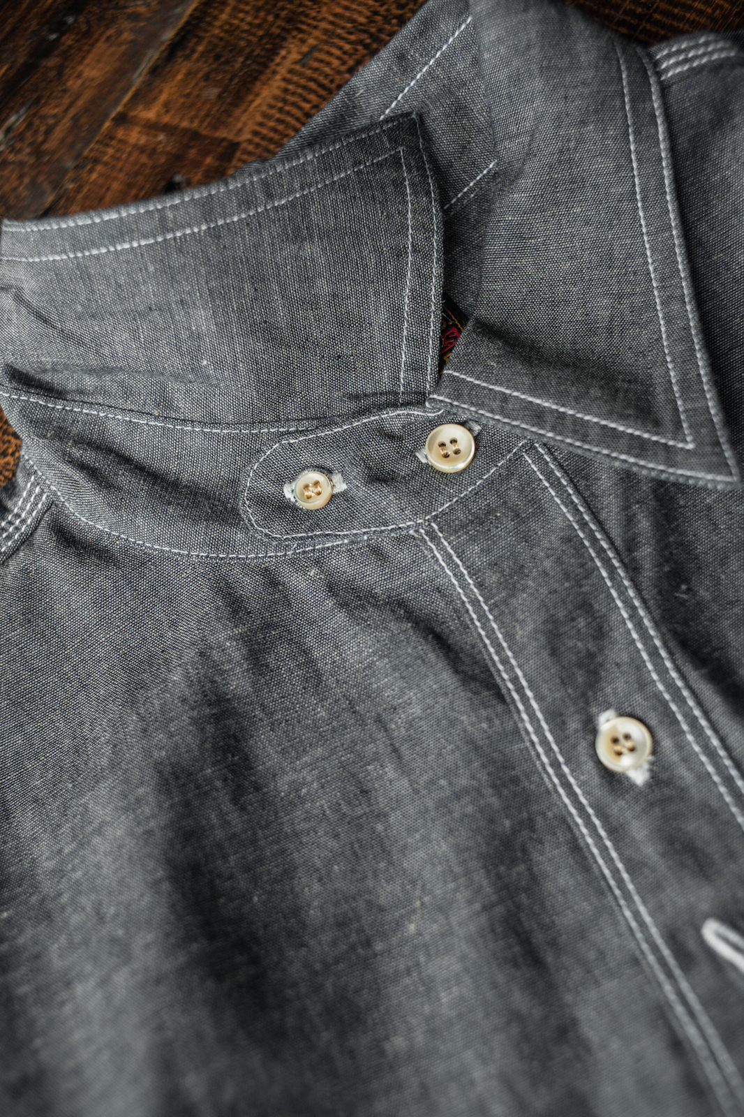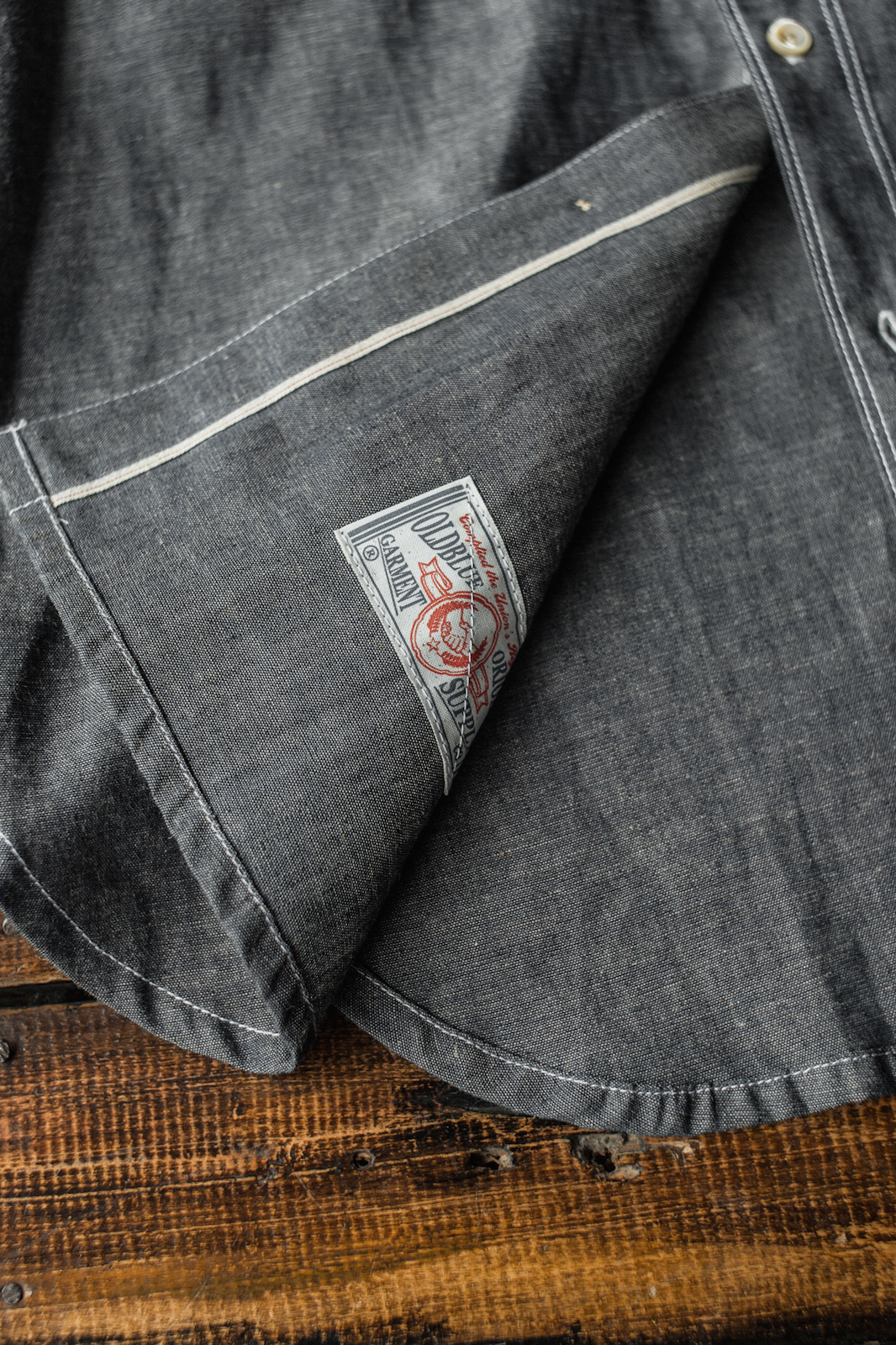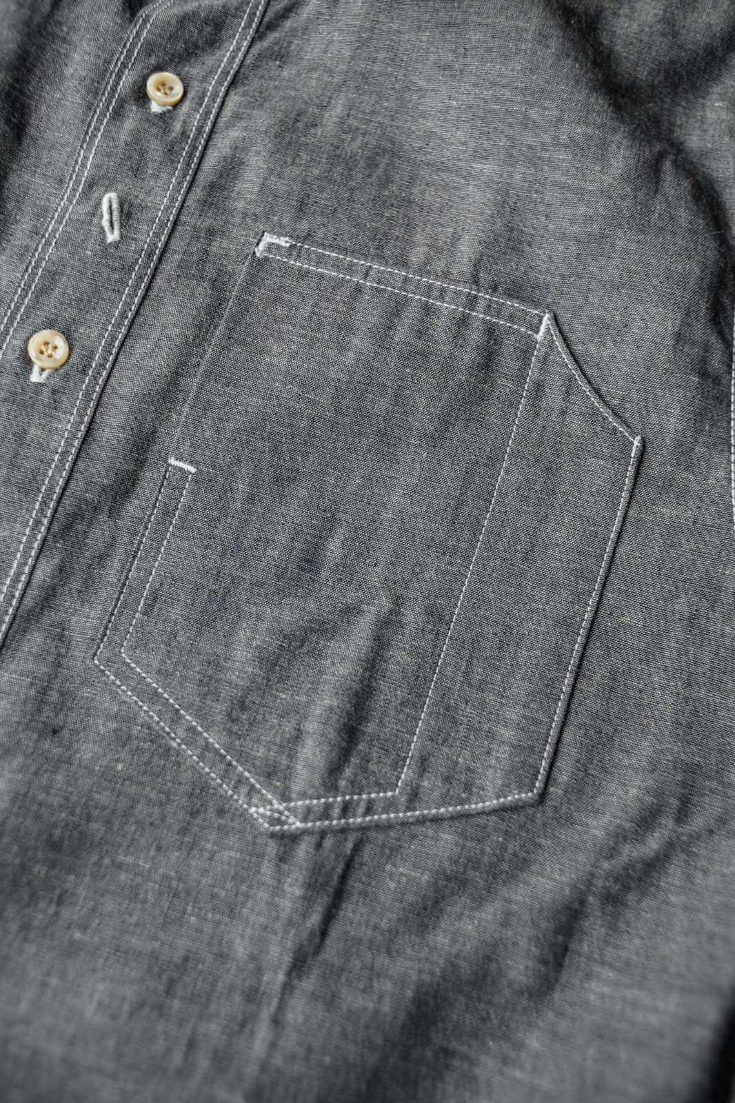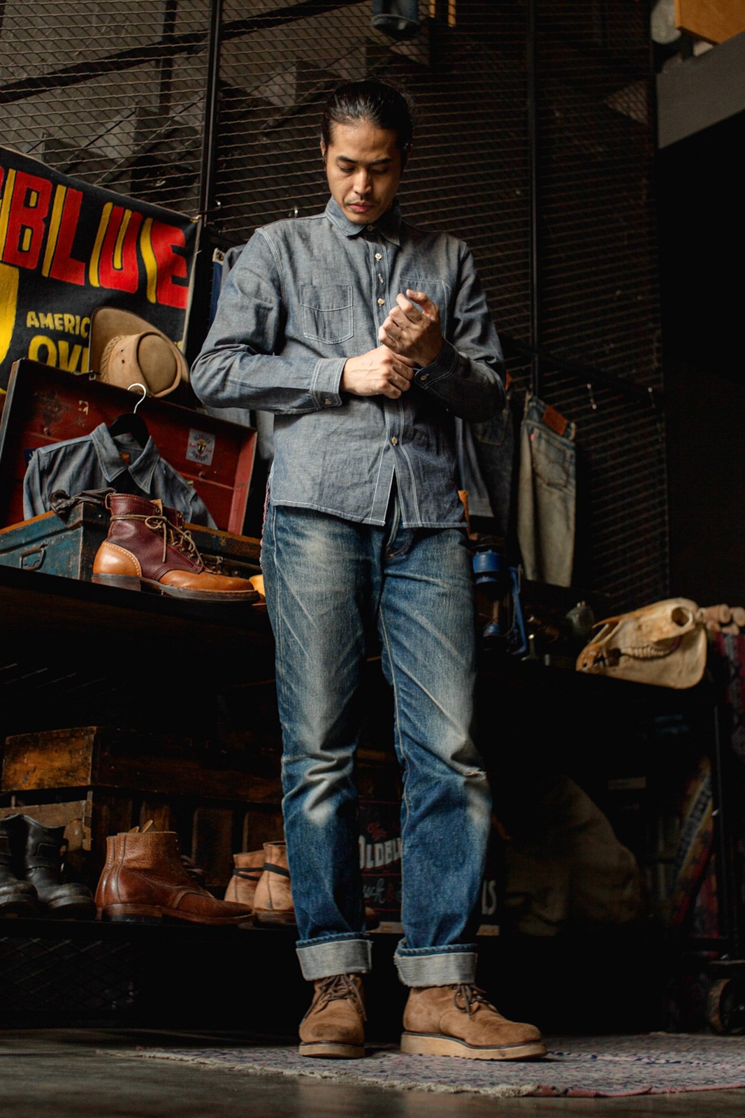 One of our earliest shirt models; the so-called Work Shirt Type II. The design was mainly inspired by the classic railroad work uniform back in the 1940s. One of the most distinct features is surely the left chest pocket with side aperture that’s designed for pocket watch safe keeping back in the day. The shirt was constructed using triple chain-stitch on every of its main seam. Ensuring the advanced durability level for the shirt construction. You can also enjoy the particular chain-stitch run-off thru the end of the body side seam. One of the genuine markings and homage to vintage work shirts.