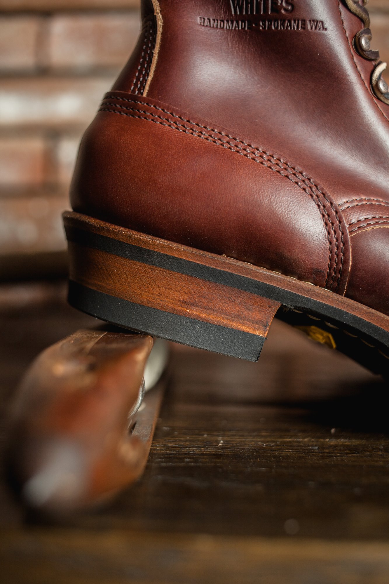White’s stitchdown construction type offers a more secure fit and feel than a Goodyear Welted boot, but takes much less time to manufacture than their true hand-sewn stitchdowns. Still hand-lasted and hand-bottomed, the liner of our stitchdown boots is glued down to the bottom of the insole. Then the vamp is turned out, and the midsole and bottom are machine-stitched together through the vamp.