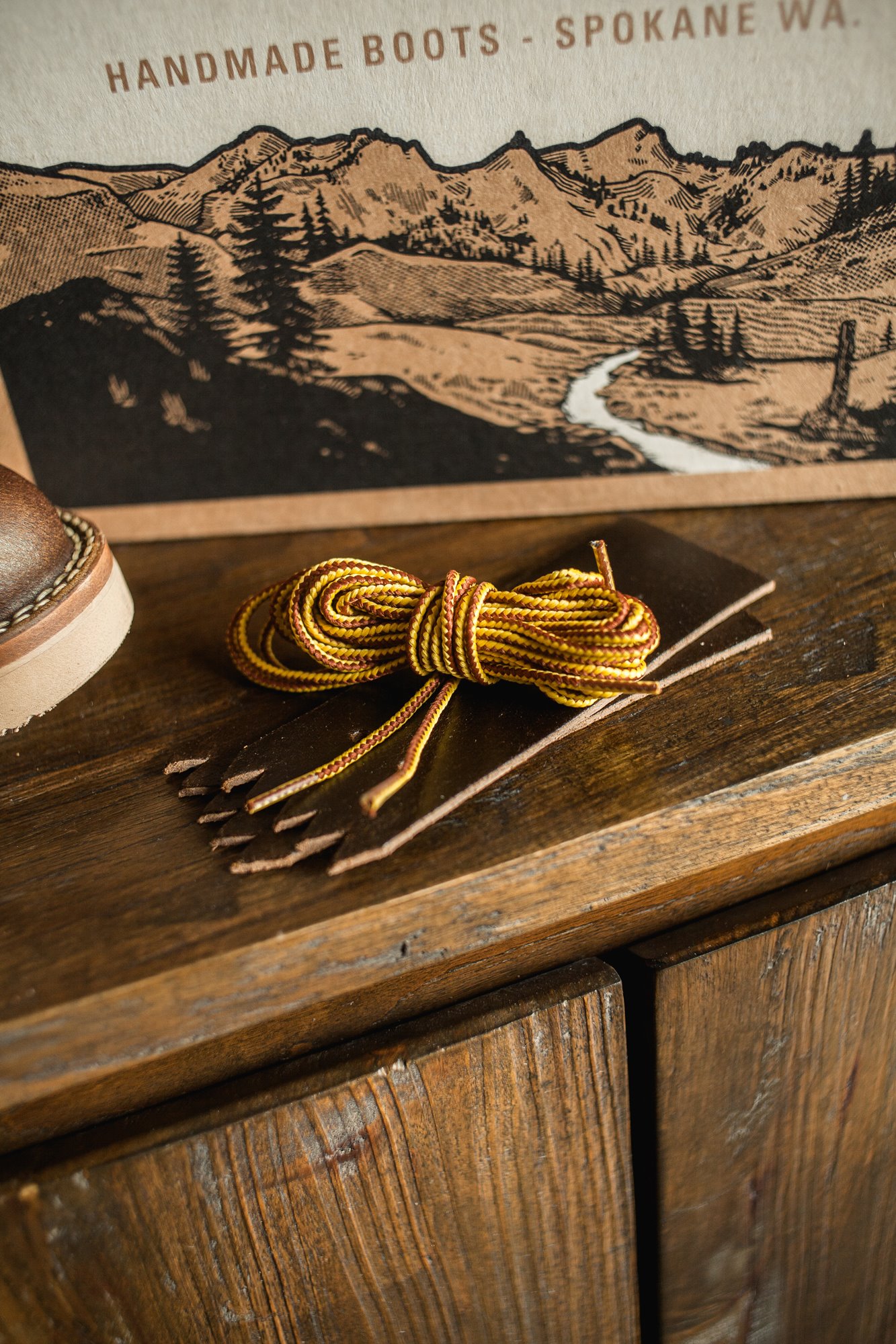 ~ Natural rawhide leather and flat waxed laces