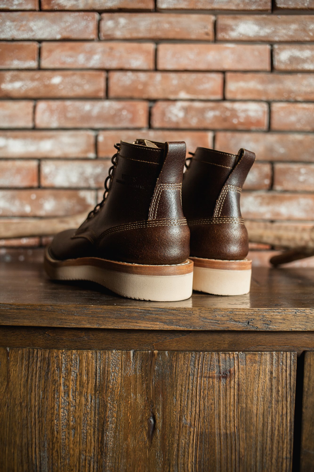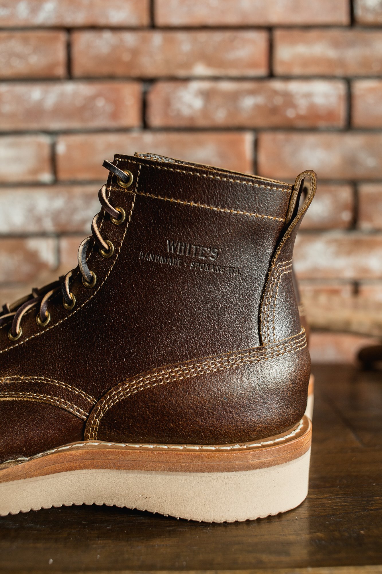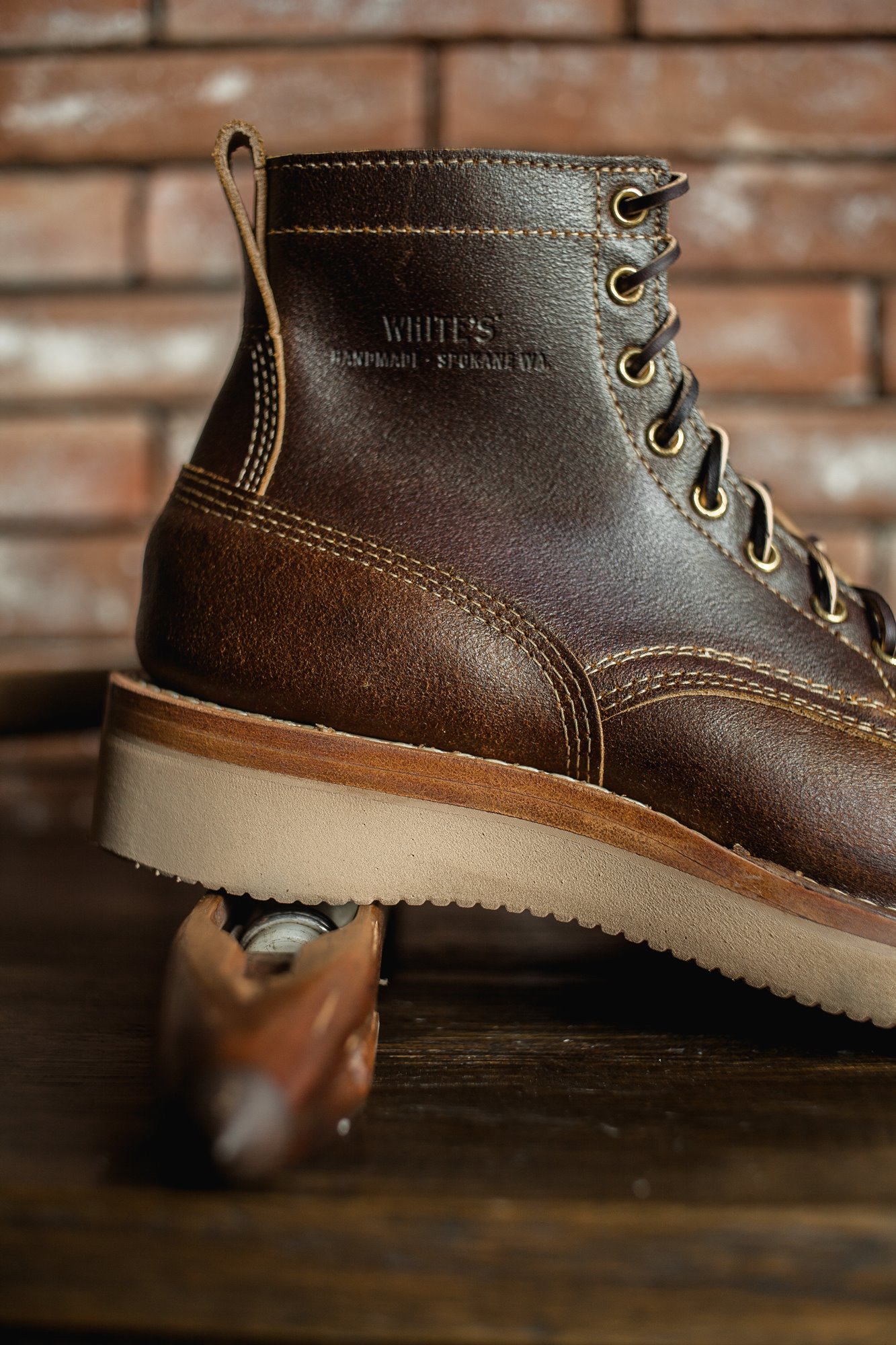 White’s stitchdown construction type offers a more secure fit and feel than a Goodyear Welted boot, but takes much less time to manufacture than their true hand-sewn stitchdowns. Still hand-lasted and hand-bottomed, the liner of our stitchdown boots is glued down to the bottom of the insole. Then the vamp is turned out, and the midsole and bottom are machine-stitched together through the vamp.