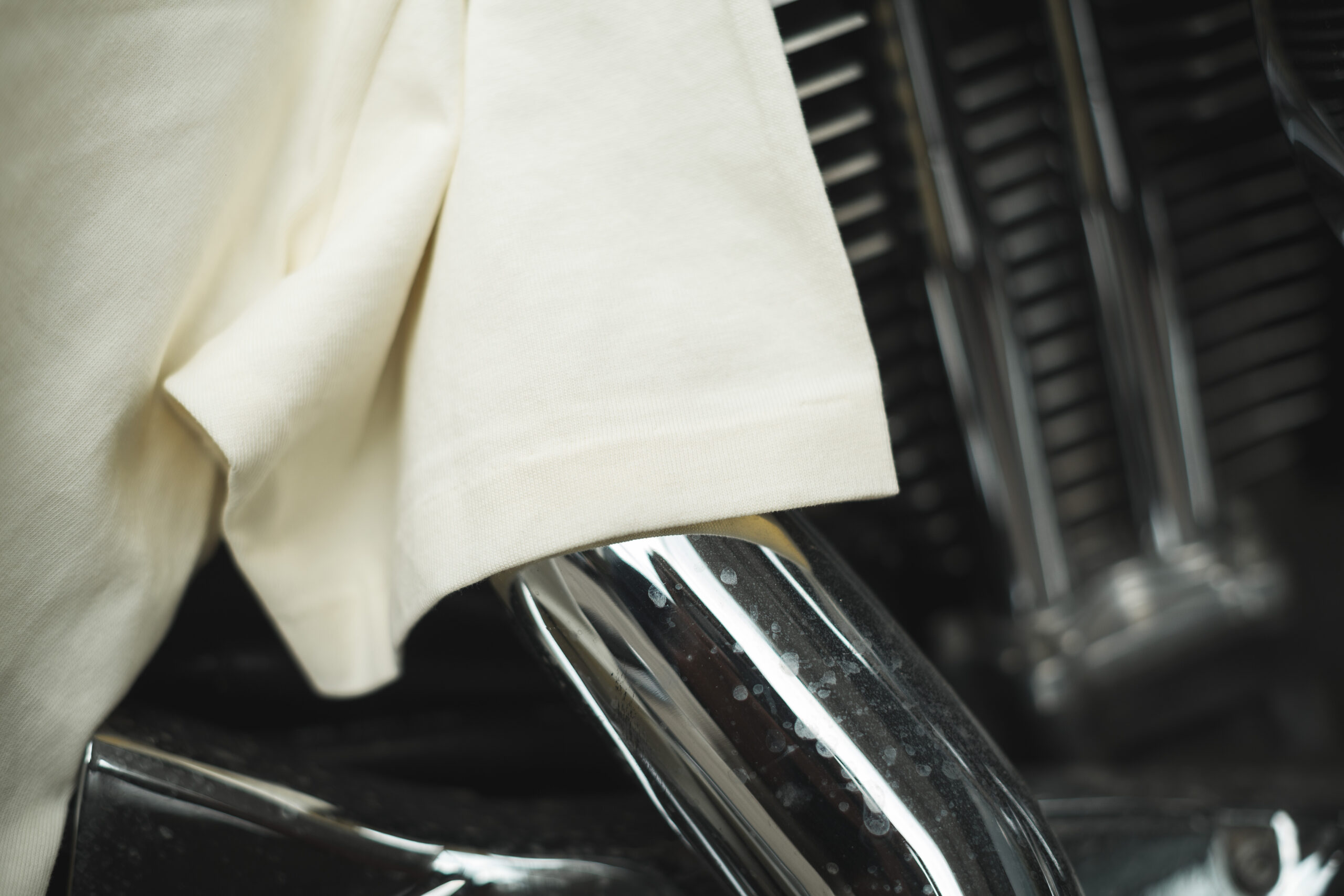 Tough as nails, just like it oughta be. We did the TRIPLE NEEDLE-STITCH binding on the neck so it won’t warp or sag, no matter how rough you ride. The sleeve and hem? They’re built with blind stitch construction, a nod to vintage t-shirt craftsmanship from before the mid-‘90s. Topped off with a water-based screen print, soft to the touch, no plastic feel. It’s got just the right amount of fade potential, so it’ll age like a fine machine.
