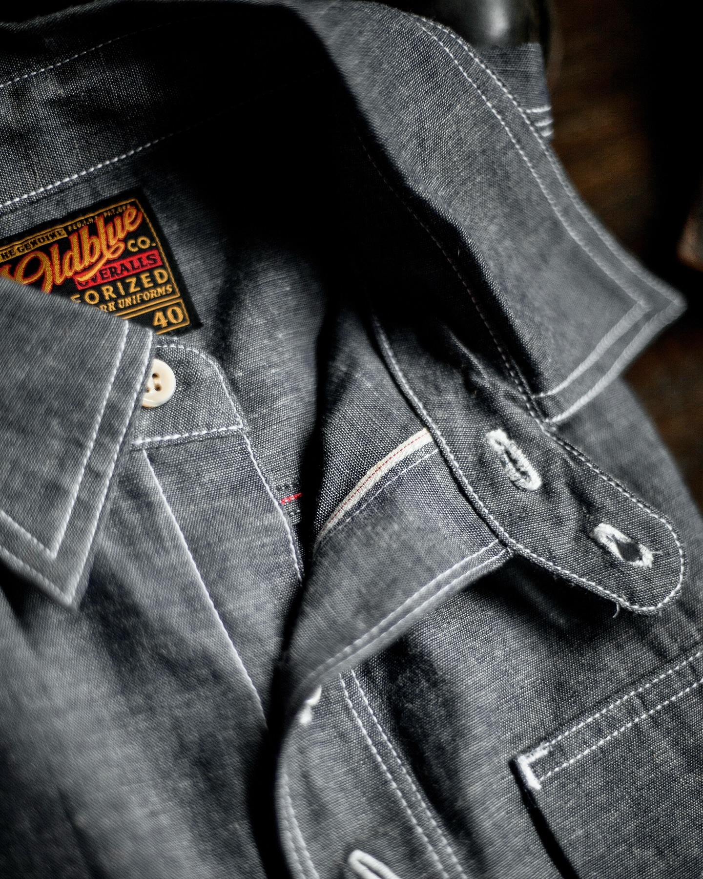 Every seam triple chain-stitched like a lasso that won’t snap. Shell buttons made from Trocas, straight from Japan, no plastic imposters here. Stress points bar-tacked like a saddle cinched tight. And don’t miss the chainstitch run-off, a mark of true heritage craft. This shirt doesn’t talk loud — it lets its details whisper old stories.