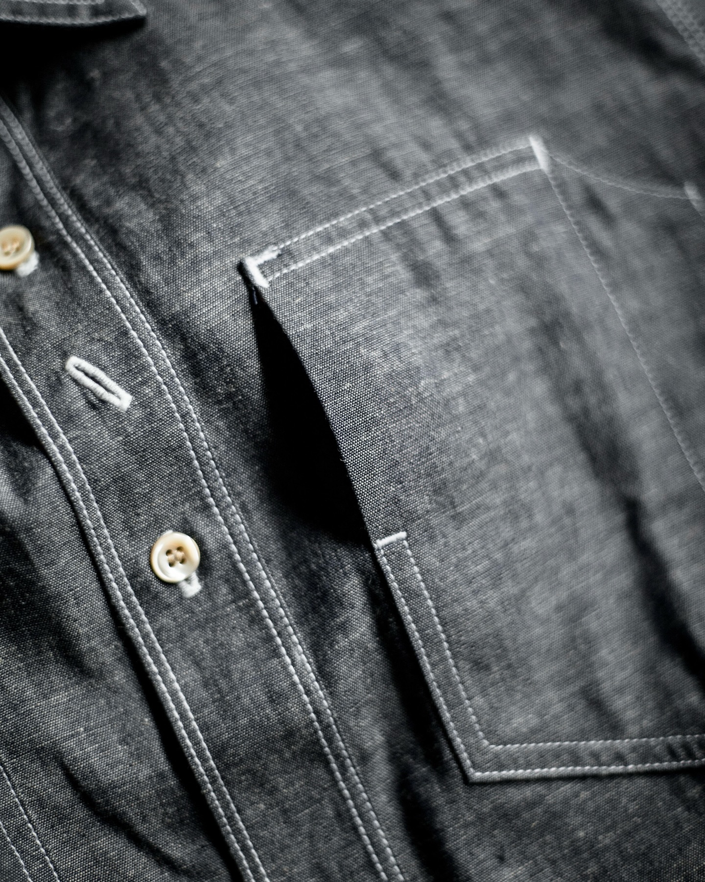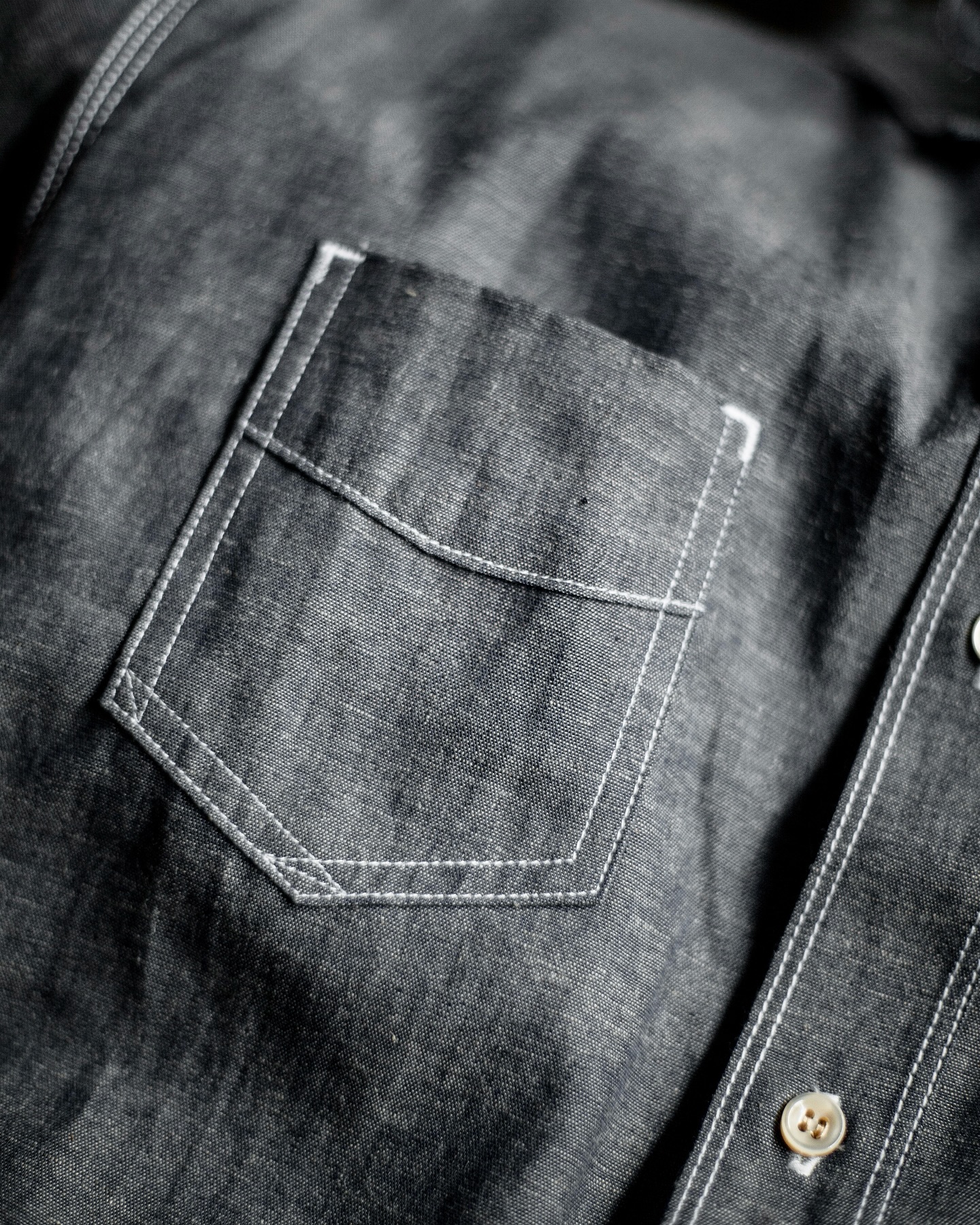 The Work Shirt Type II is built from a 5 oz rope-dyed indigo chambray that hails deep in the belly of Yoshiwa Mills, Japan. Onee of the few places still weaving cloth the slow, precise way. This cloth is rope-dyed in rich indigo, meaning the core of the yarn stays white while the outside soaks in color. Over time, that dye chips away with wear — giving you a fade story that’s completely your own. At 5 oz, it’s light, but don’t let that fool you, it breathes. It holds its shape. And it gets better the more you beat it up.