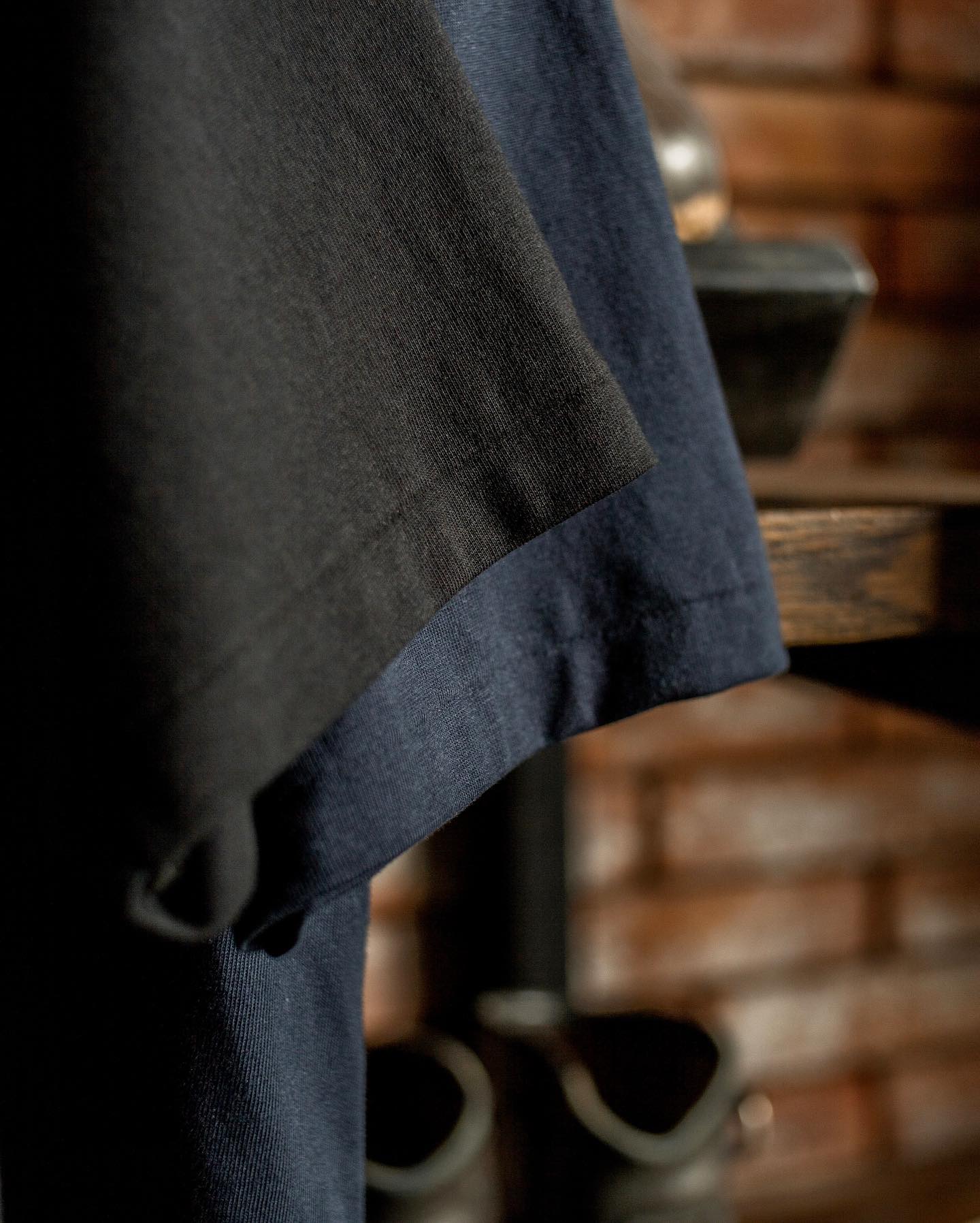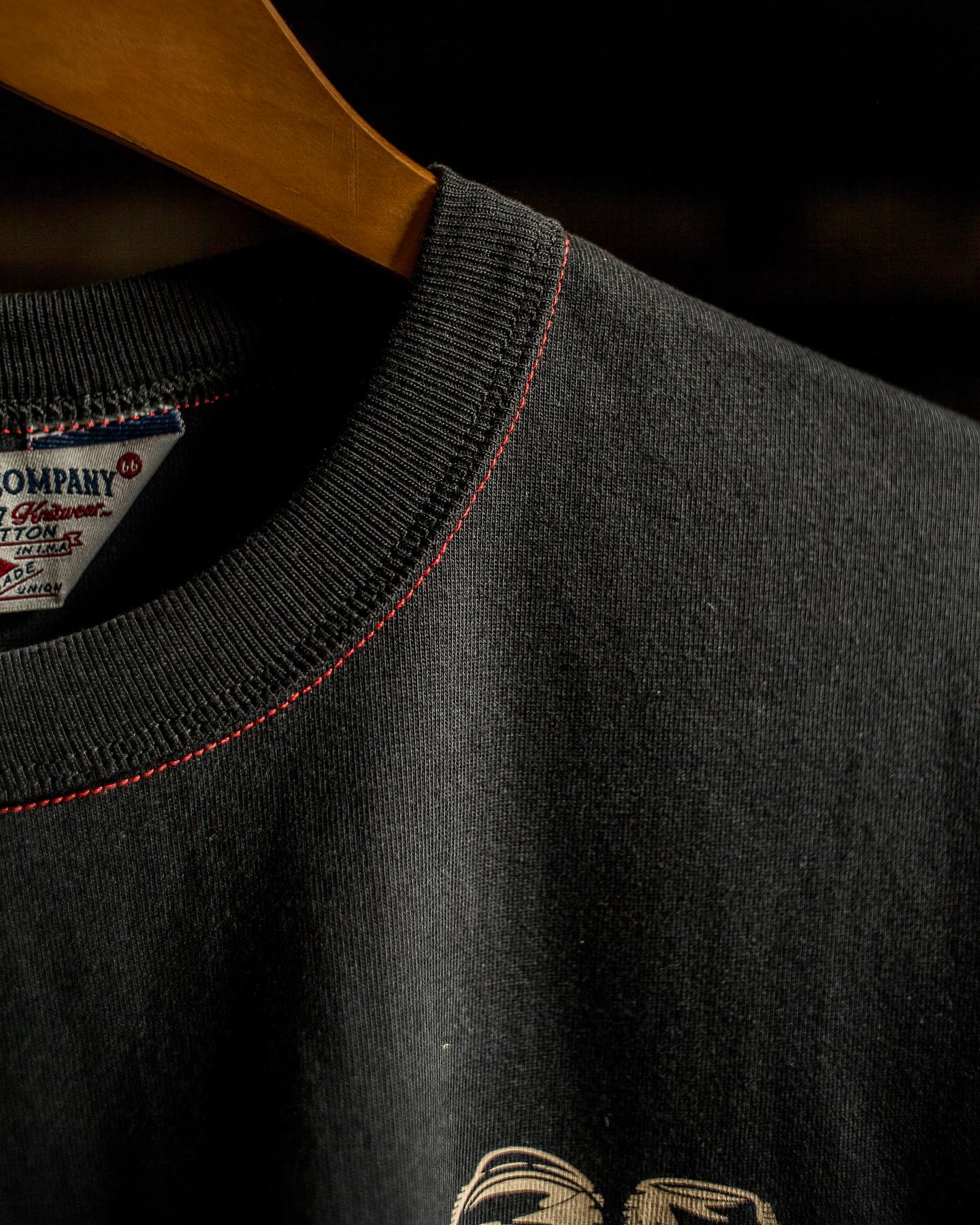 This time we put our signature Heavy Tee to good use. The base material is a 7 OZ./SQY. heavy-weight jersey-knitted fabric. Constructed using 16/1 cotton yarns. One of the most special things about the fabric is that it’s constructed using RING SPUN cotton yarns.