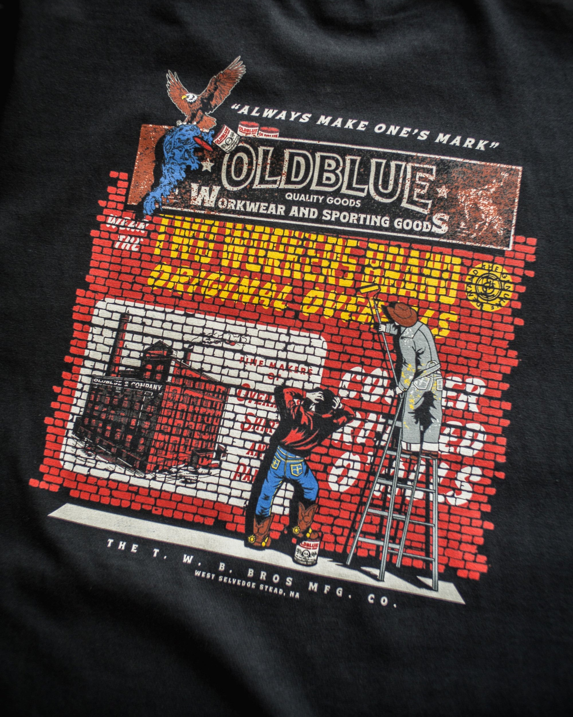 These heavy tees graphic run pulls straight from that era. Old posters. Shop signs. Crate stamps. The kind of visuals that meant something because the goods behind them had already proven their worth. Each graphic is reworked with respect, built to carry the same standards Oldblue has stood on since day one.