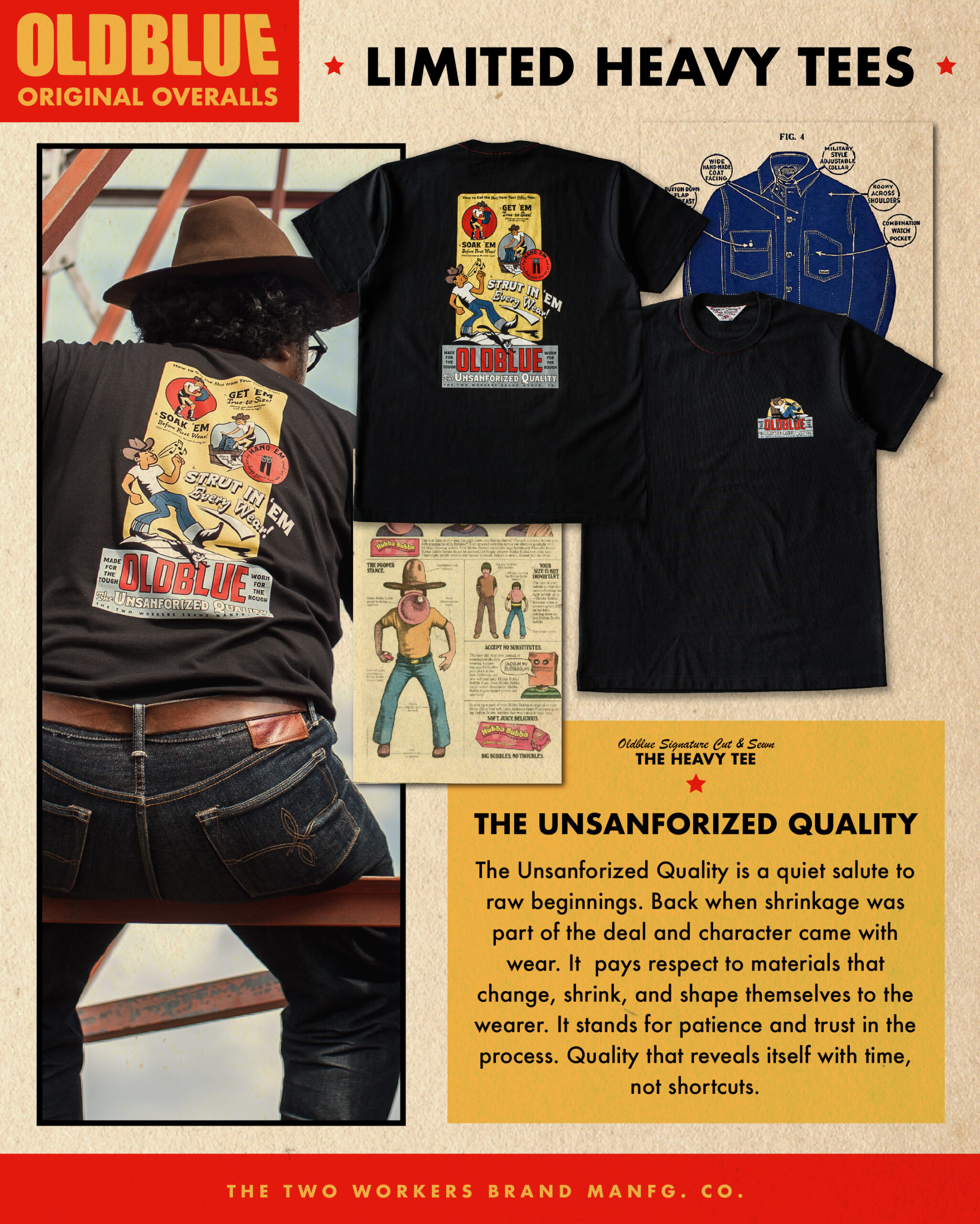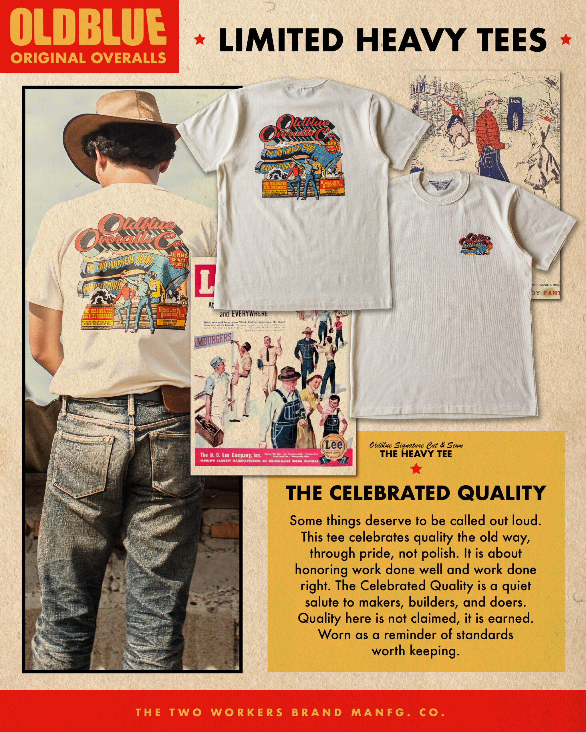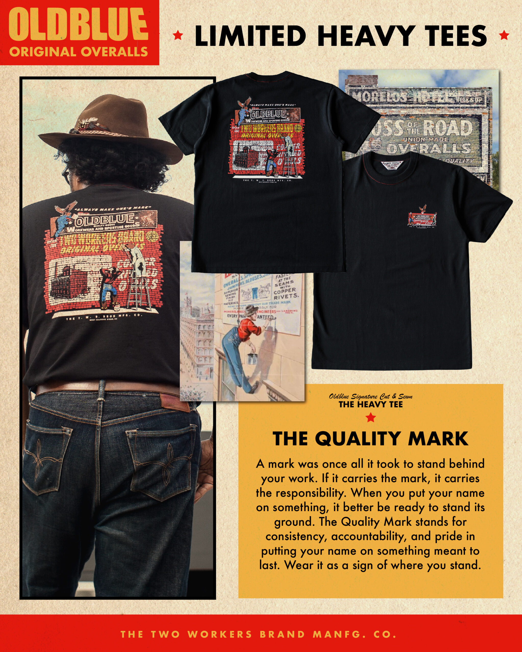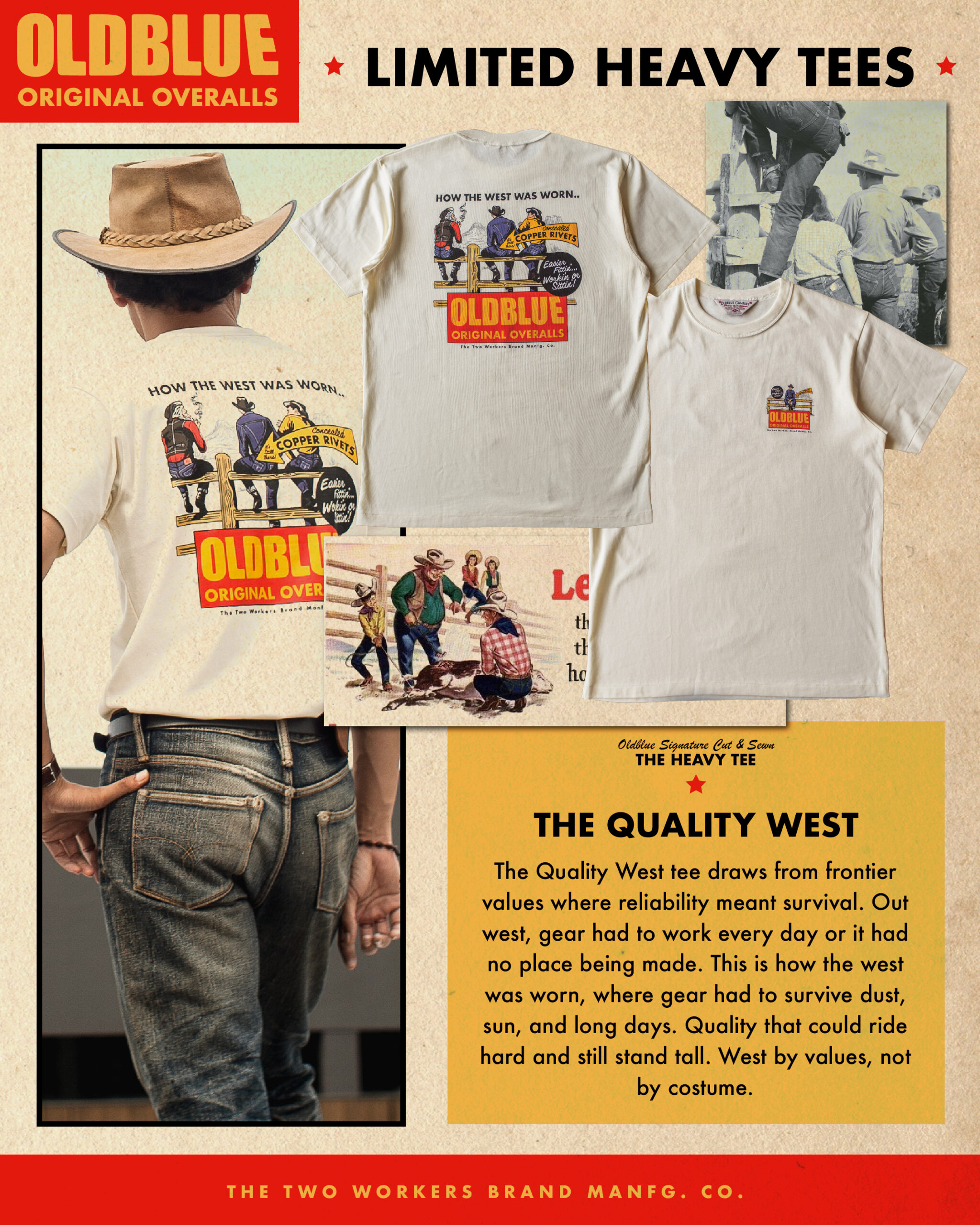 The current run of Oldblue Heavy T’s collection are available in 6 different articles. They are: The Quality Value, The Unsanforized Quality, The Celebrated Quality, The Quality Goods, The Quality West , and The Quality Mark.